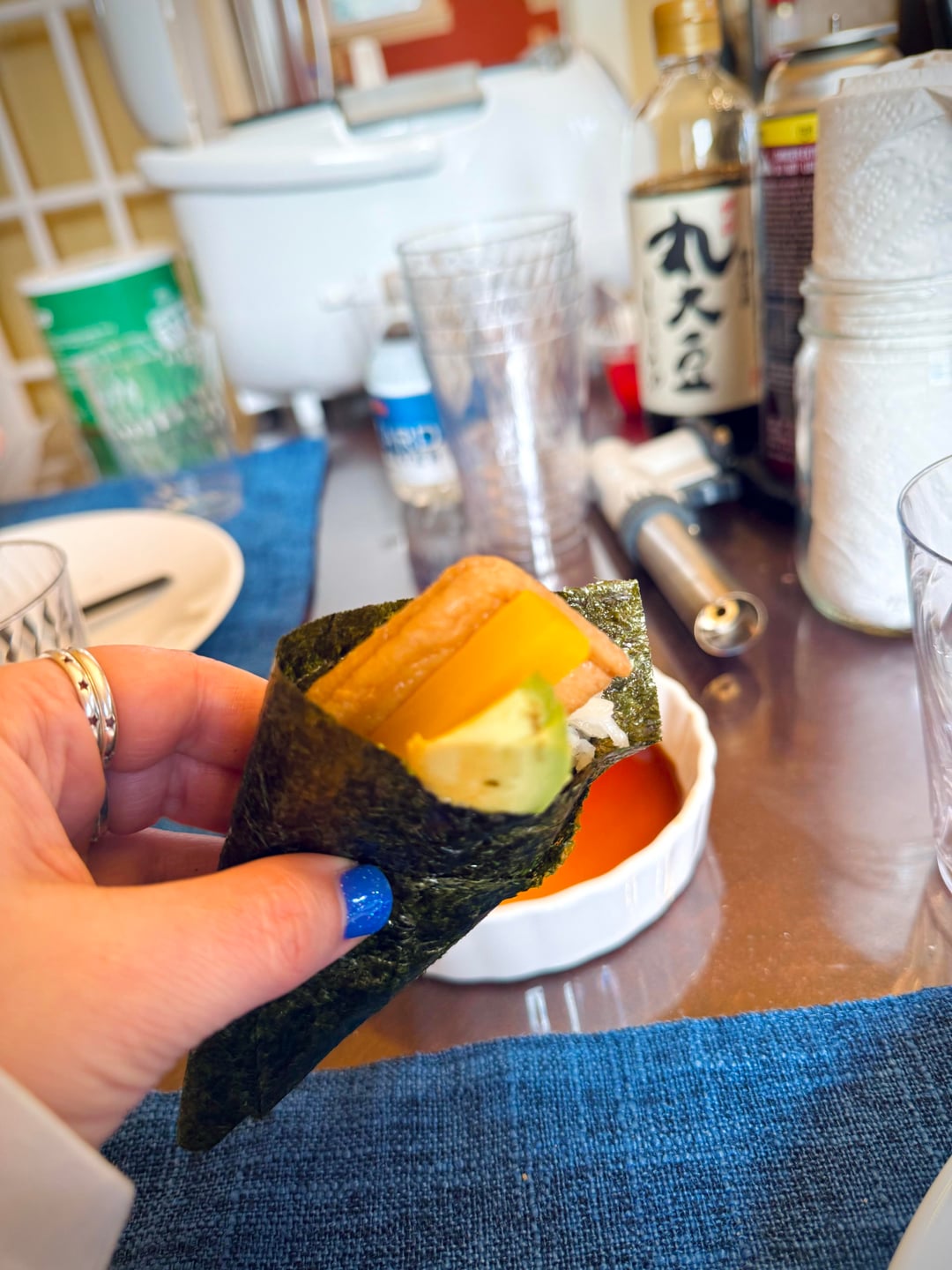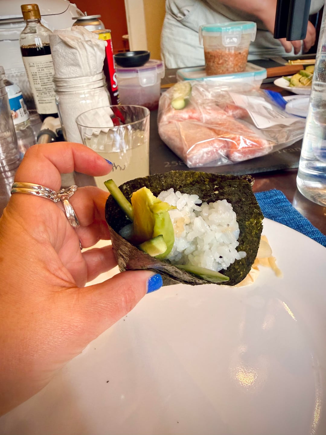Did a handroll night for a group of friends this week! Huge success and SO much easier than maki or nigiri. Used the leftover rice to make onigiri.