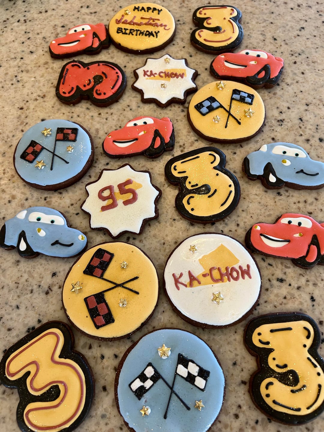 Lightning McQueen bubbles for my son’s 3rd Birthday partyby Melificarum 2 Comments Slade-EG 2 weeks ago So cute! Good job! Melificarum 2 weeks ago I don’t know why the title says “bubbles.” It’s supposed to be “cookies.”