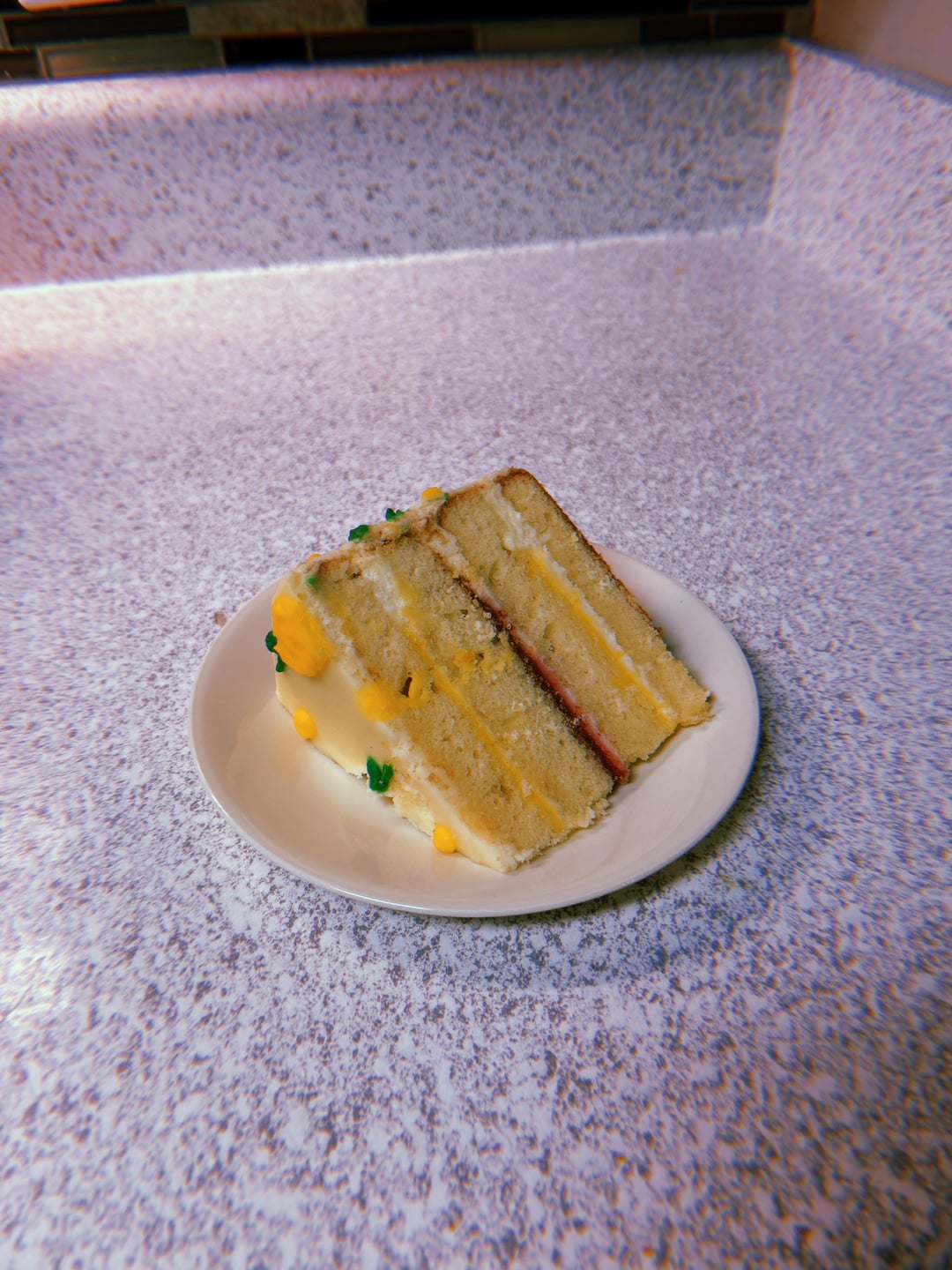 made this cake for my boyfriend's birthday! he's a lemon lover (as you can tell) so i pulled out all the stops for this one. its a chantilly cake filled with lemon curd and raspberry puree. the lemons on the outside of the cake are all flavoured with the same curd used on the inside. surprisingly (despite its marscapone/ cream cheese icing AND the fact that its a four-layer cake), it survived two 4+ hour car rides in the humid southeast- sooo go me WOO