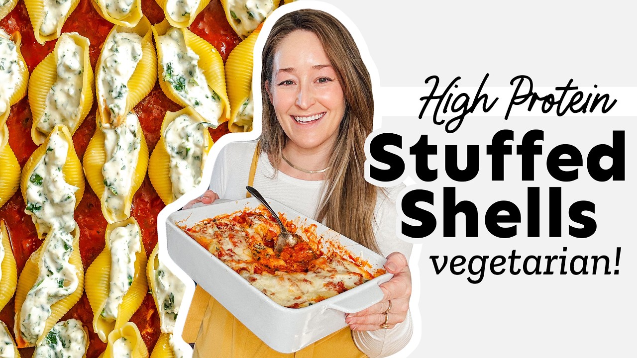 My vegetarian stuffed shells, filled with whipped cottage cheese and spinach, are creamy, cozy, and quietly high-protein (just the way we like it!). This is Italian-American comfort food made lighter yet amazingly more satisfying than their ricotta counterparts!