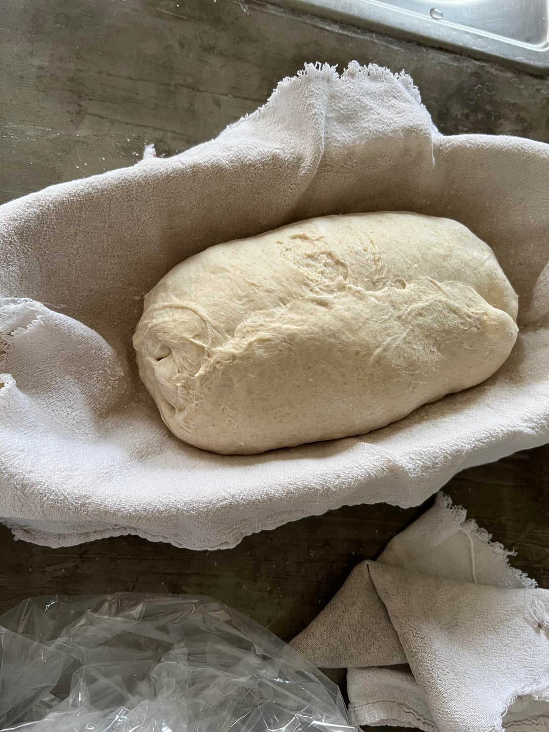 Preshape into rounds and let rest for 20 minutes before final shaping. The final rise in baskets was 7 hours at 70°F.