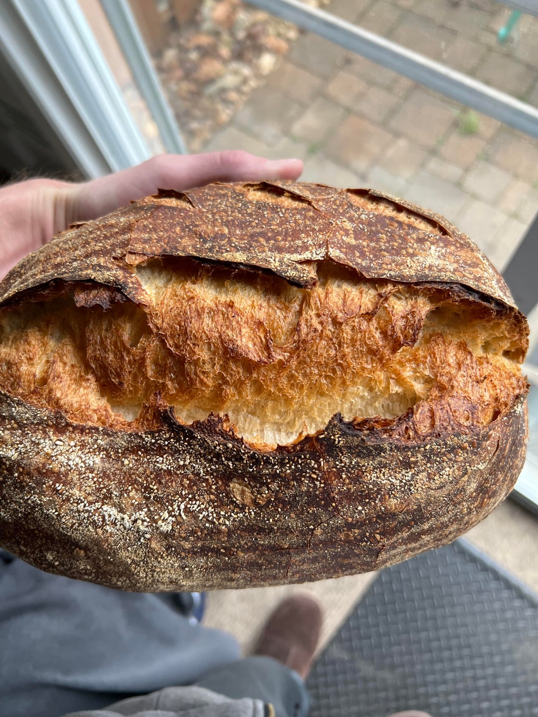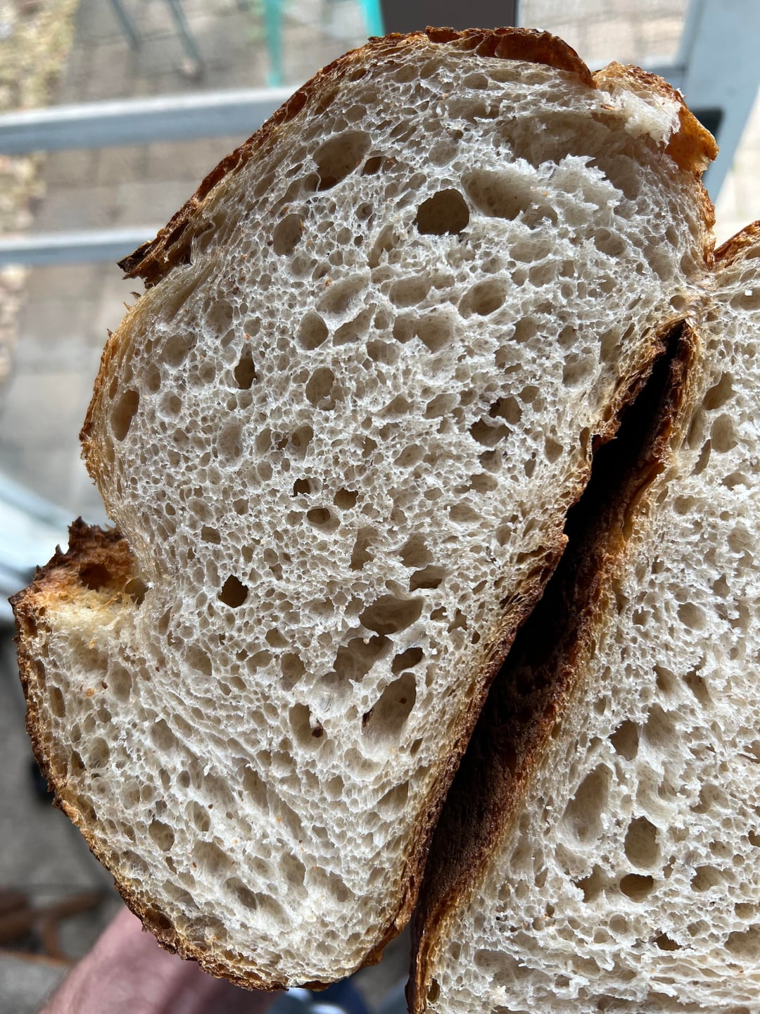 My go-to bread for my days off work. Mixed to near full development in a Famag spiral mixer and given one fold half an hour into bulk.