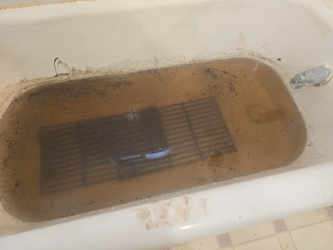 Cleaning smoker grates in the tub! First time I thought about trying this. Definitely easier to clean. But had to scrub the tub after!
