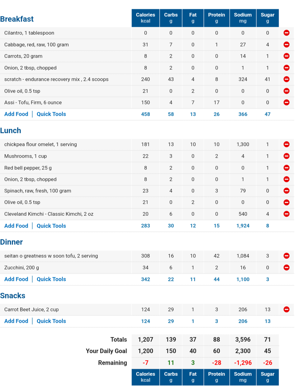 Just one day of eating. You could could have more volume and variety by omitting the protein drink and beet juice. There's also other protein mixes that offer more protein per 240kcal but this one is to help replenish glycogen stores as well