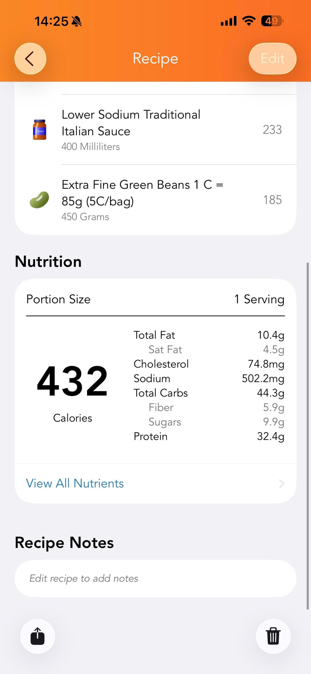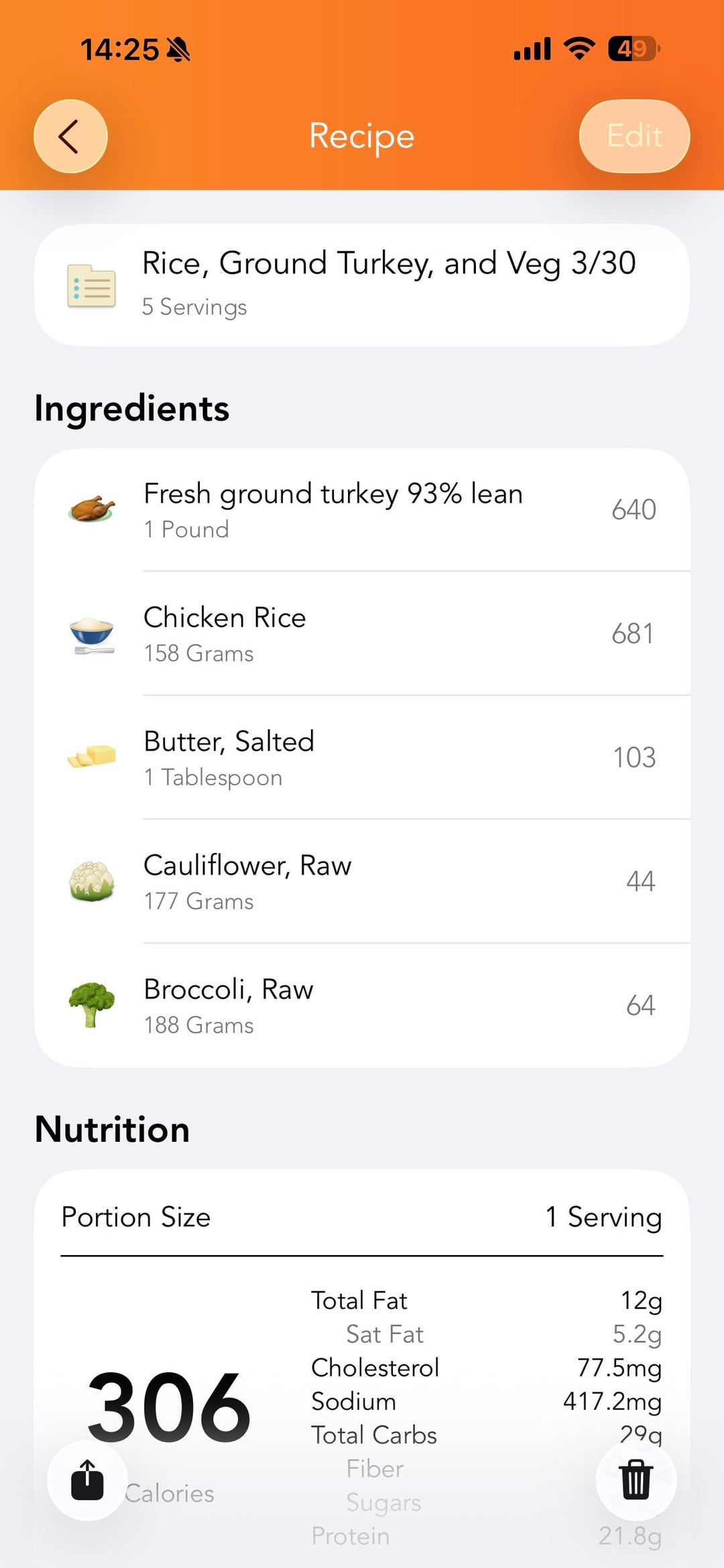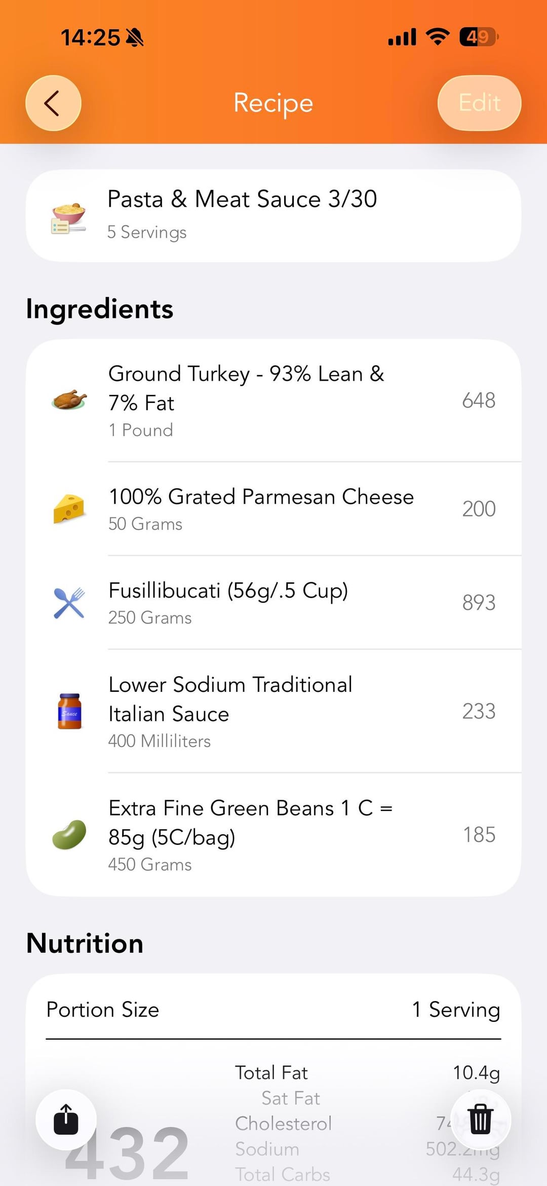 Ingredients in screen shots – app is called LoseIt!