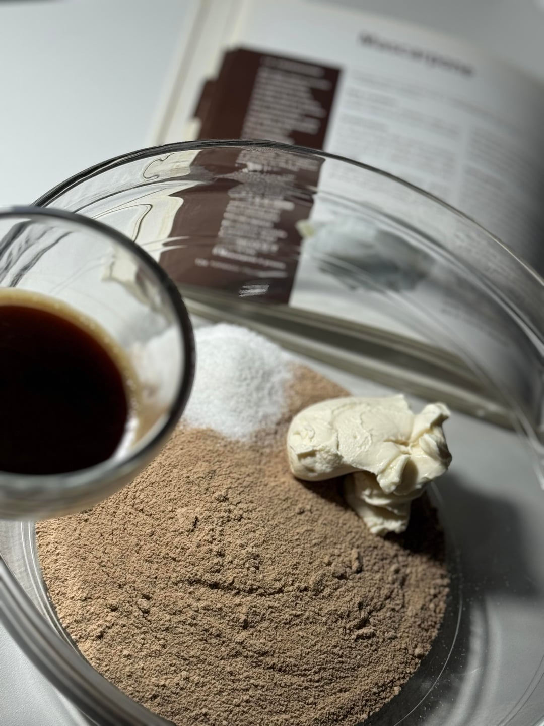 . 125 g ladyfingers· 50 g mascarpone cheese· 1 small spoon of sugar · 1 small cup of coffee· unsweetened cocoa powder for coatingby Loud-Bad-1742 Dining and Cooking