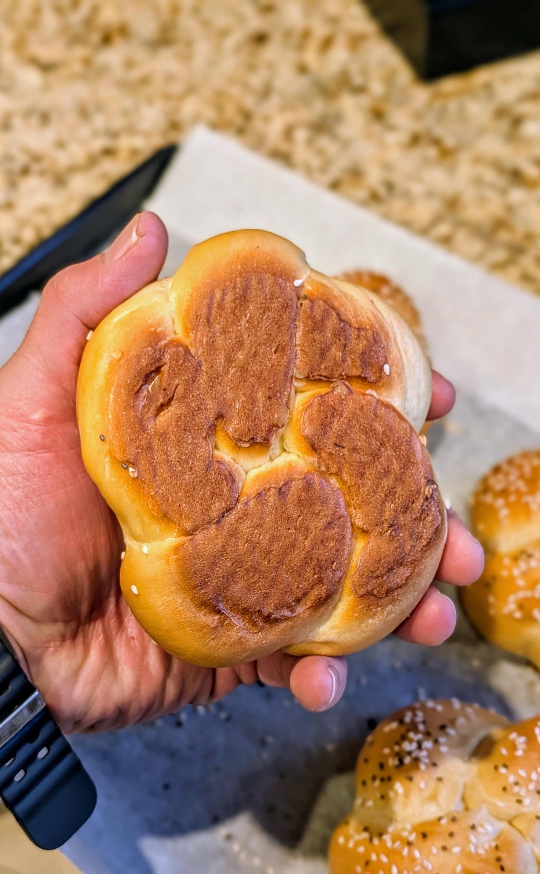 Share Facebook Twitter Pinterest LinkedIn Reddit First time making these, hardest part was the tying the twist knot. Video link: https://youtu.be/nyfi0RMa1sY?si=22JzBZ9if8KqJDKq by skylinetechreviews80 5 Comments Confusedlemure 4 weeks ago I love that channel. Sucks that he decided to quit YouTube. Plenty of content to dig through though. Your rolls/buns look wonderful! dysoncube 4 weeks ago Is it a bagel? It looks great Aggressive_Line_8298 4 weeks ago Chefs kiss johor 4 weeks ago They look great. Well done. I’ve only ever made the [Martha Stewart kaiser buns.](https://youtu.be/j10JOr_8Ocw?si=-xxkKjjkZdTKs19u) awhelllnaw 4 weeks ago I️ want one! (also why did you hold it like that 😭)