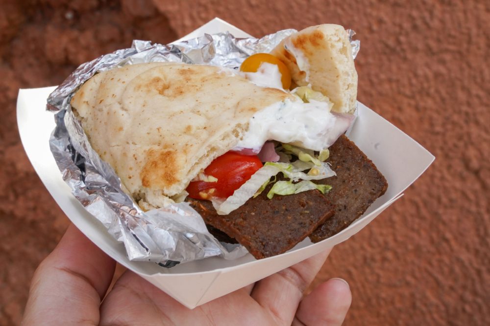 The gyro meat was dry and chewy but the flavor was authentic. A bit light on the meat and too much of everything else. We found the pita to be thick and the main flavor came from the tzatziki sauce. If we had less sauce, or even some of the side, we would’ve liked this more. It’s good, just not great, and there are better options from this booth.