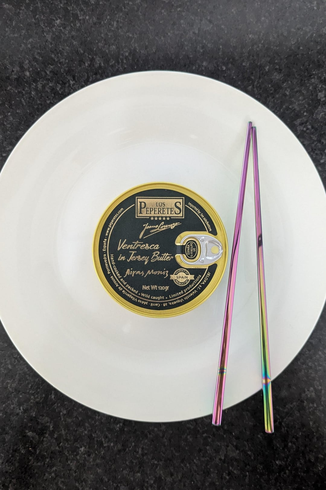 Los Peperetes Ventresca in Jersey butter. This might be the best tin of tuna I've ever had. And the most expensive by far. This tin was around £23 from the Tinned Fish Market.