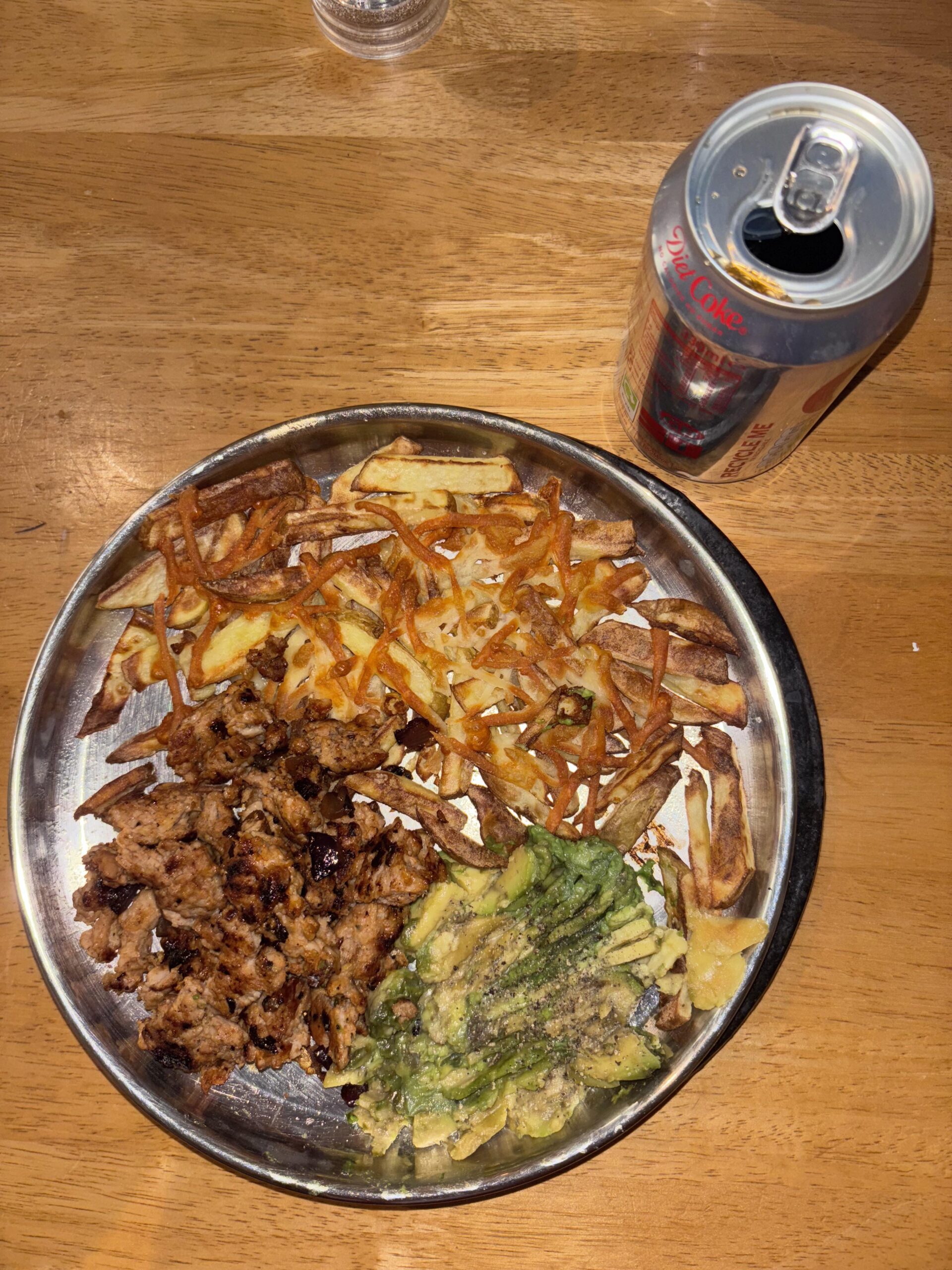 Share Facebook Twitter Pinterest LinkedIn Reddit Quite a staple. 160g potatoes, 125g 5% chicken mince, 20g reduced fat cheese, 50g avocado (with peri peri seasoning on the chicken! 450 cals, 35P, 15F 50C by amrita_panda_ Dining and Cooking