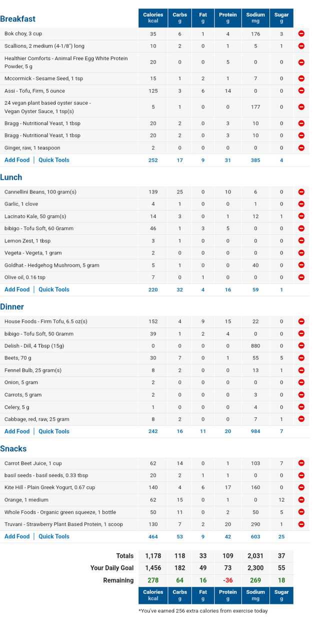 3 cups of bok choy steamed with scallions and ginger, dressed with a mix of nutritional yeast and vegan oyster sauce