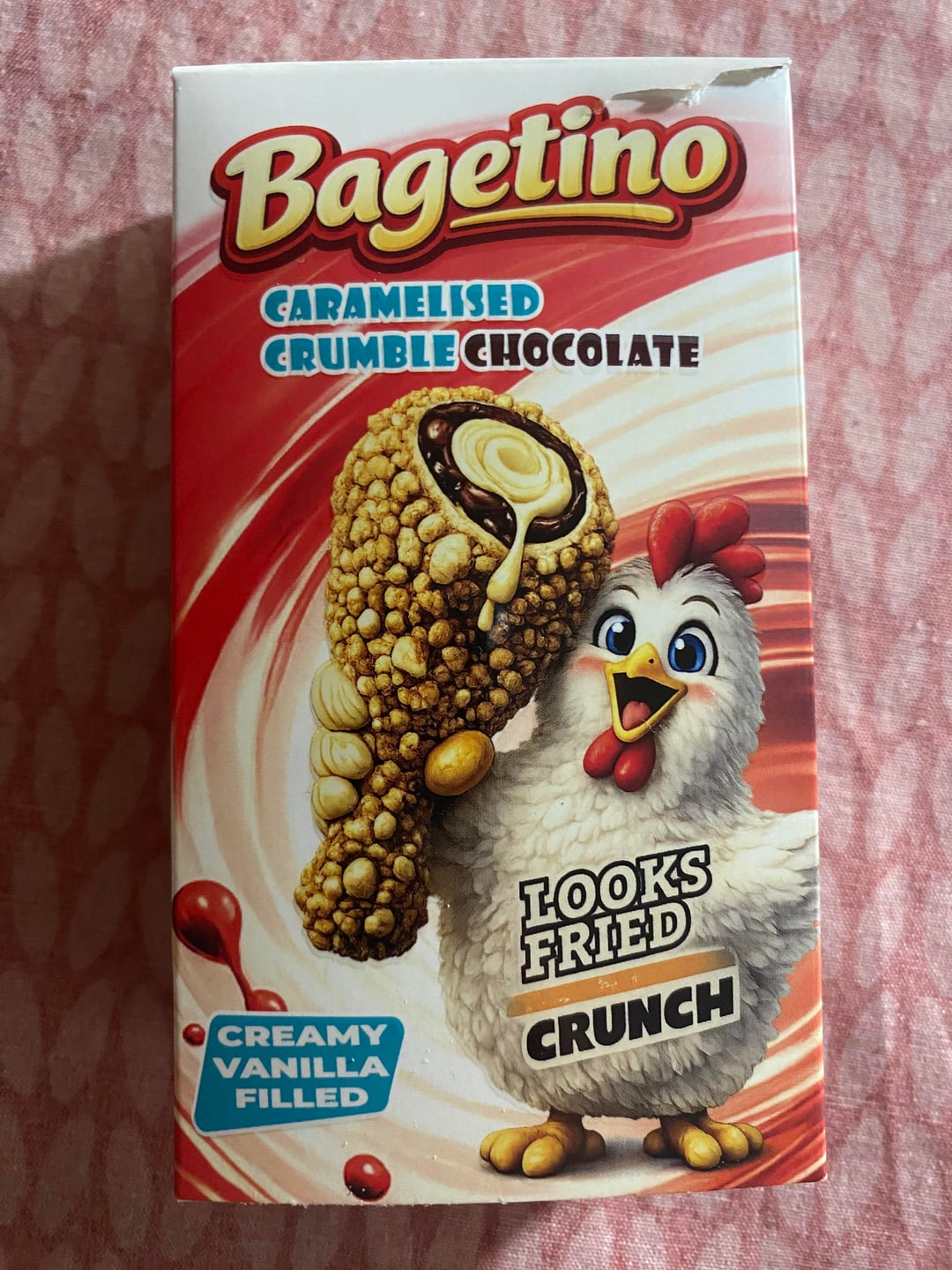 the ai chicken with fingers on packaging is horrifying but its just a novilty vanilla icecream at the end of the day