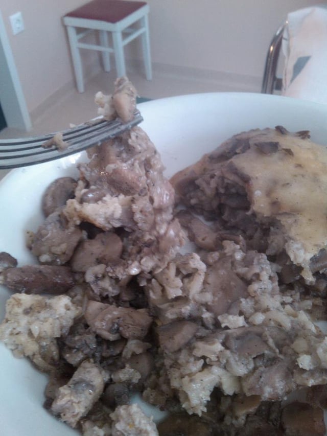 The first one is actually delicious cafeteria food, it’s mashed potatoes and meat with sour cherry sauce.
