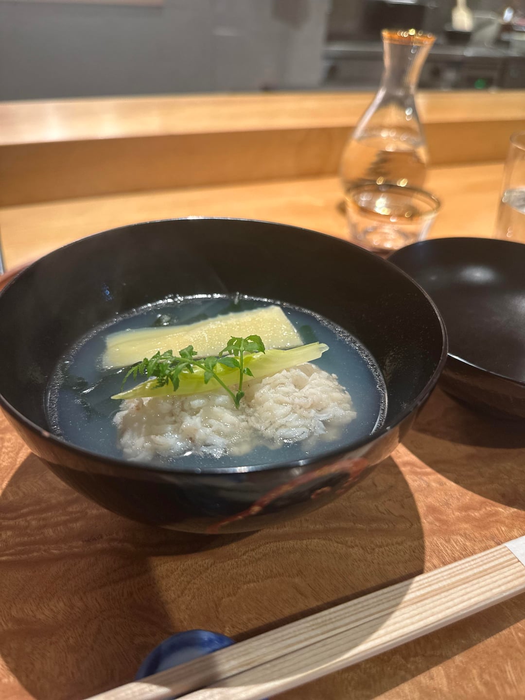 1. Unagi owan – it sorta looks like a botan hamo, was prepped similar too. Unagi from Kumamoto w tanenoko from the same, wakame from something that started with Y and sounded like yuriage. Really nice, I loved the soup and went really nice with the sake I started with