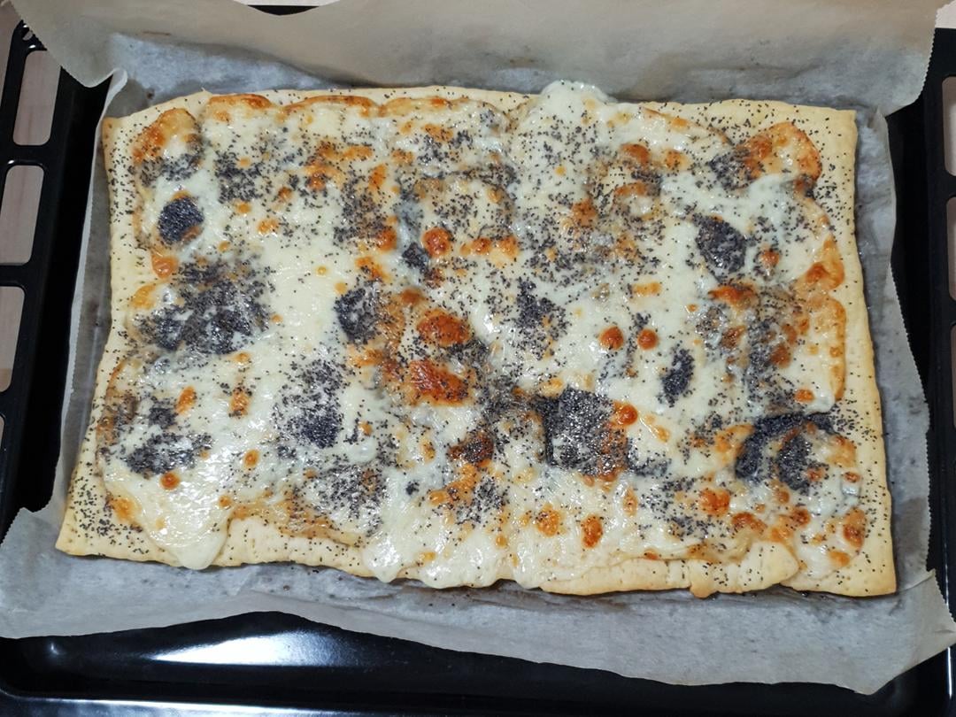 Kashkaval and poppy seeds is whiter because I baked it at night and ran out of egg yolks to brush on top.