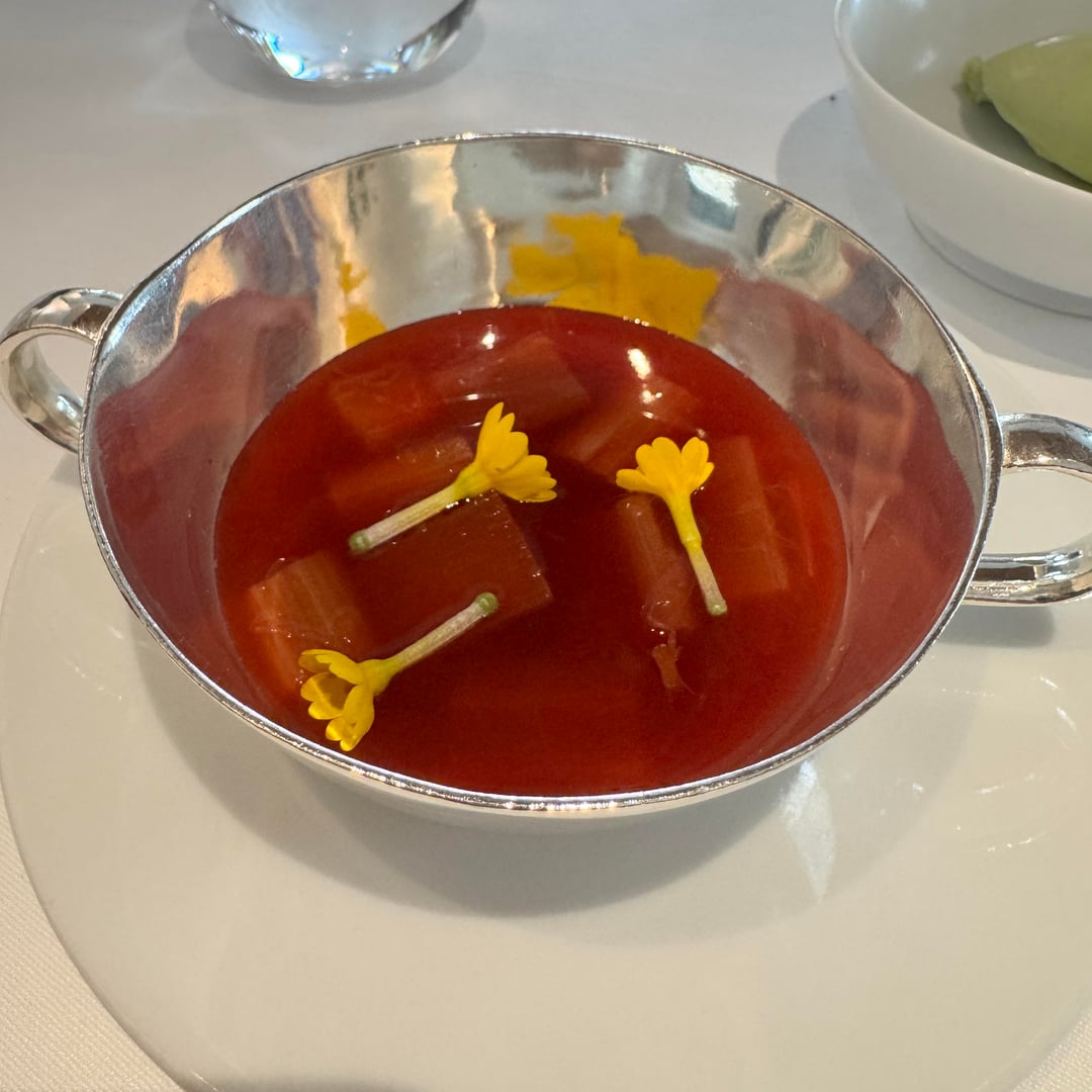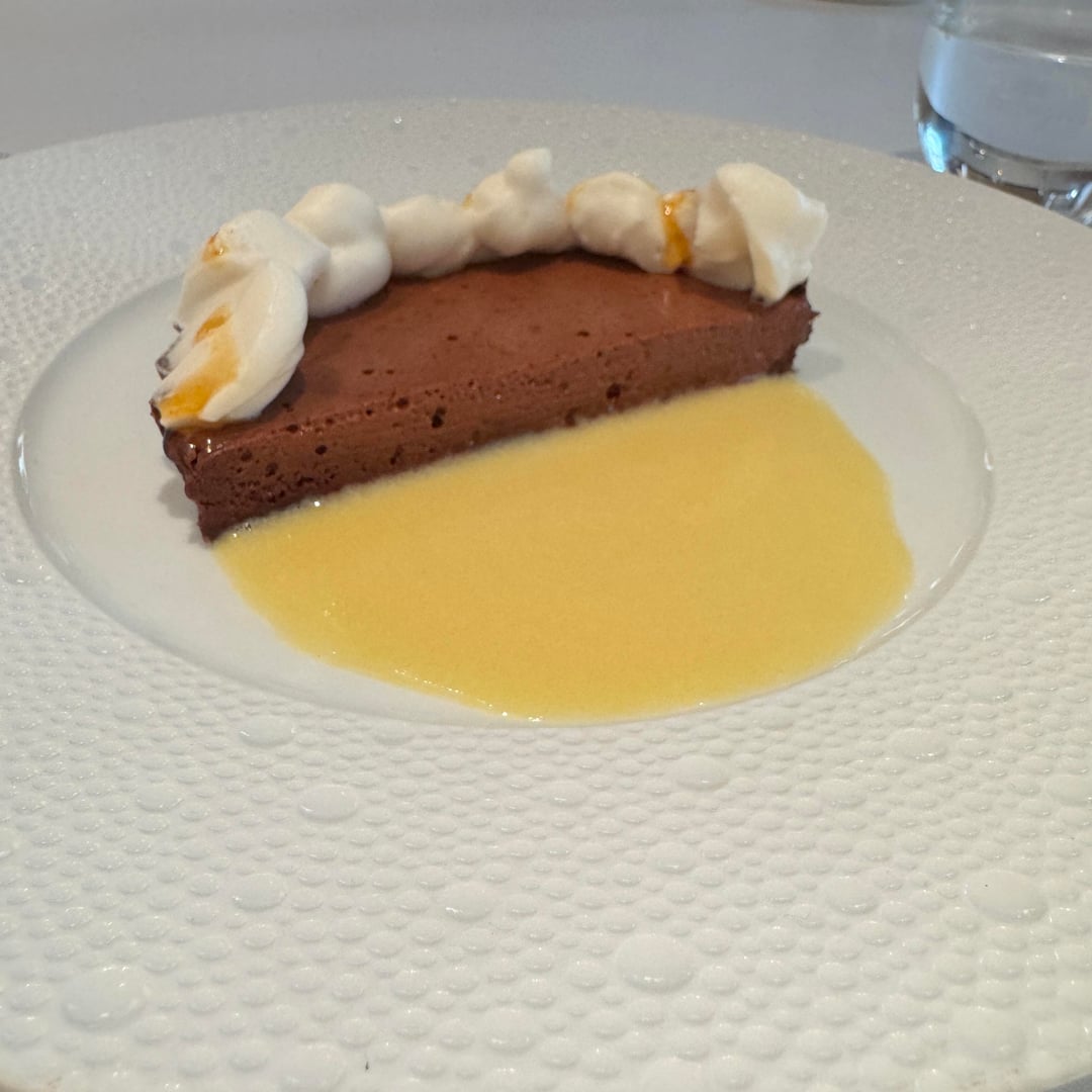 The only part of the meal that didn’t really land for me was the desserts. There was a chocolate tart with citrus that leaned very bitter, and it kind of felt like bitter on bitter without enough sweetness to balance it. It came with a geranium ice cream that was actually really good, made with house almond milk and some kind of lentil-based stabilizer. Then there was rhubarb, which may have been the first of the season, but it was very astringent and not really sweetened at all. Again, technically interesting, but I found myself wanting something sweeter at the end of the meal. Ironically, the beetroot and celeriac juice I had earlier was sweeter and more satisfying in that sense than the desserts were. They finish with a couple of mignardises, a small apple tartlet and some fresh apple juice, which were a bit sweeter, but I still felt like I was missing a dessert experience that I might have expected.