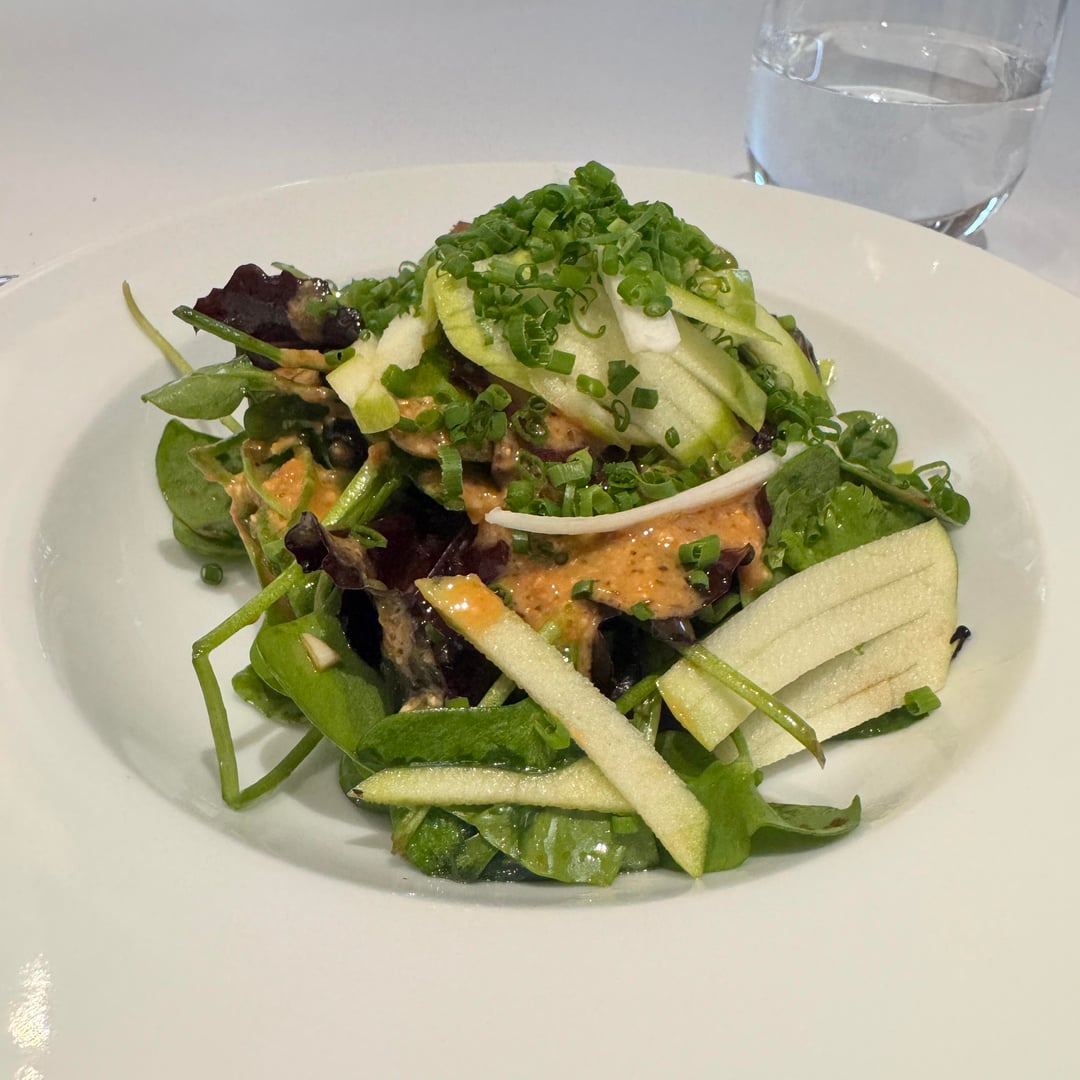 There was also a mesclun salad that, again, didn’t sound particularly exciting on paper, but ended up being great, almond praline in the dressing, some green apple for crunch, just really well put together.