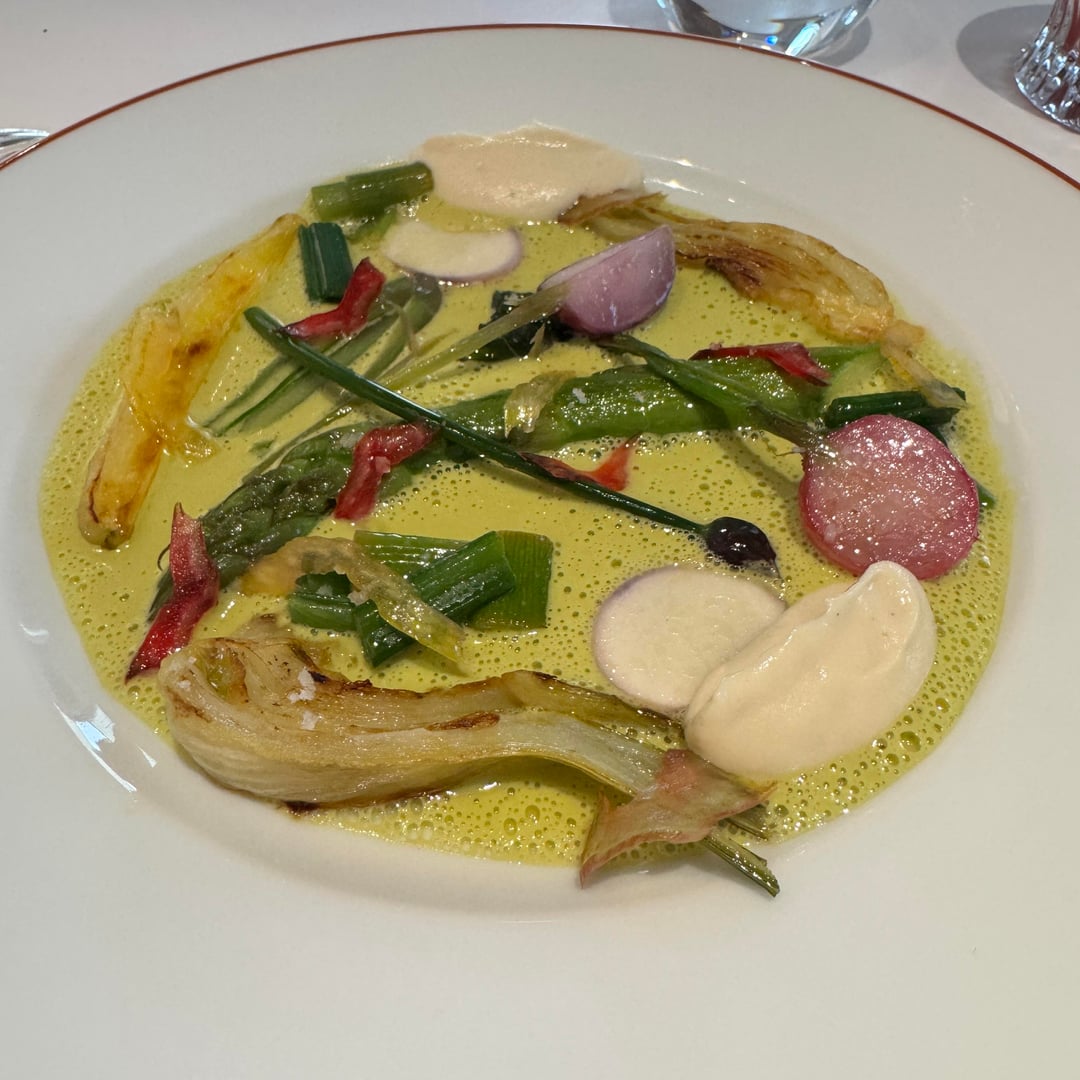 The last savory course was basically a collection of vegetables from the garden that came in that morning, fennel, asparagus, and others, all in a really nice sauce. It felt like a summary of everything that came before it.