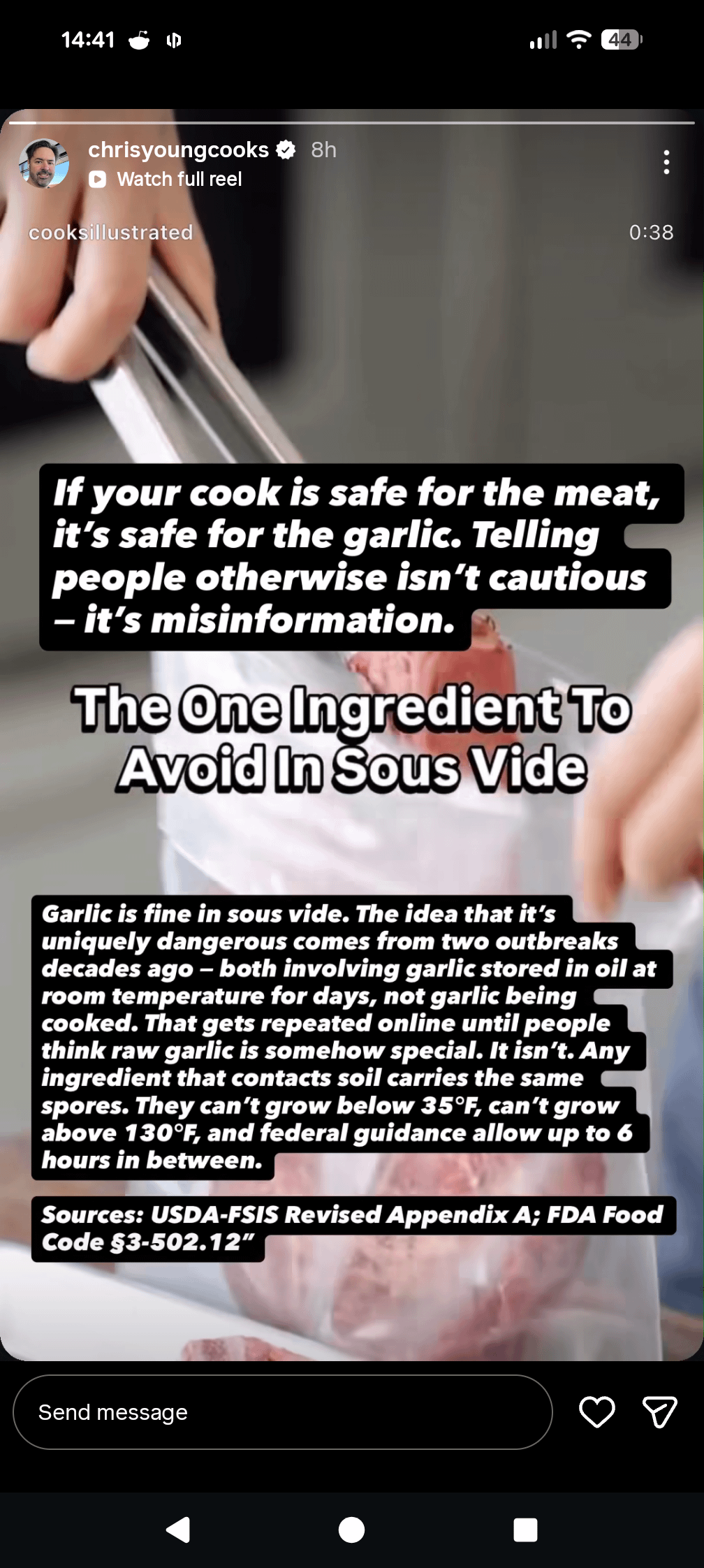 People seem to be taking an either/or approach on this and it’s hurting my brain. It strikes me as Lan Lam is saying, “hey, this is a serious risk, so please hedge your bets and don’t do this” while Chris Young is saying, “Hey, here’s the science, don’t do dumb shit when you’re cooking something sous vide.” Both things can be true and represent differing types of cautiousness.