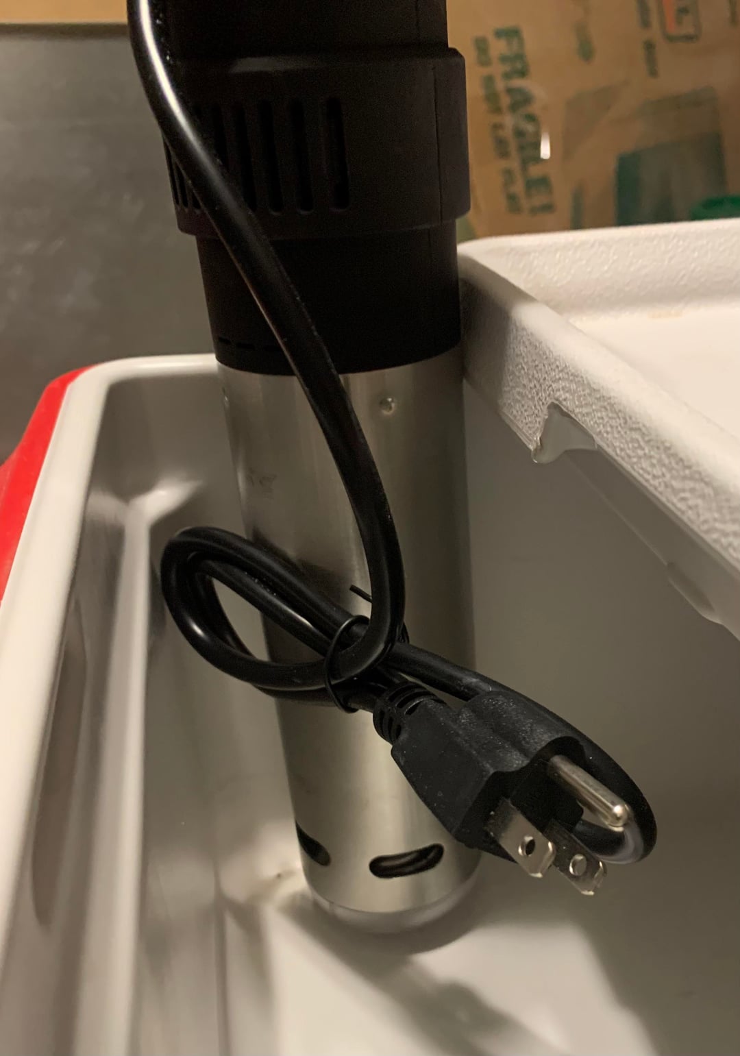 I guess that I could put a spacer on top of the Party Stacker lid to lift the Anova so it does not sit on the cooler bottom. But, that would have a part of the top portion of the Anova touching the lid. Am I correct in that the entire metal portion of the Anova should be in the cooler and not touching any part of the cooler?