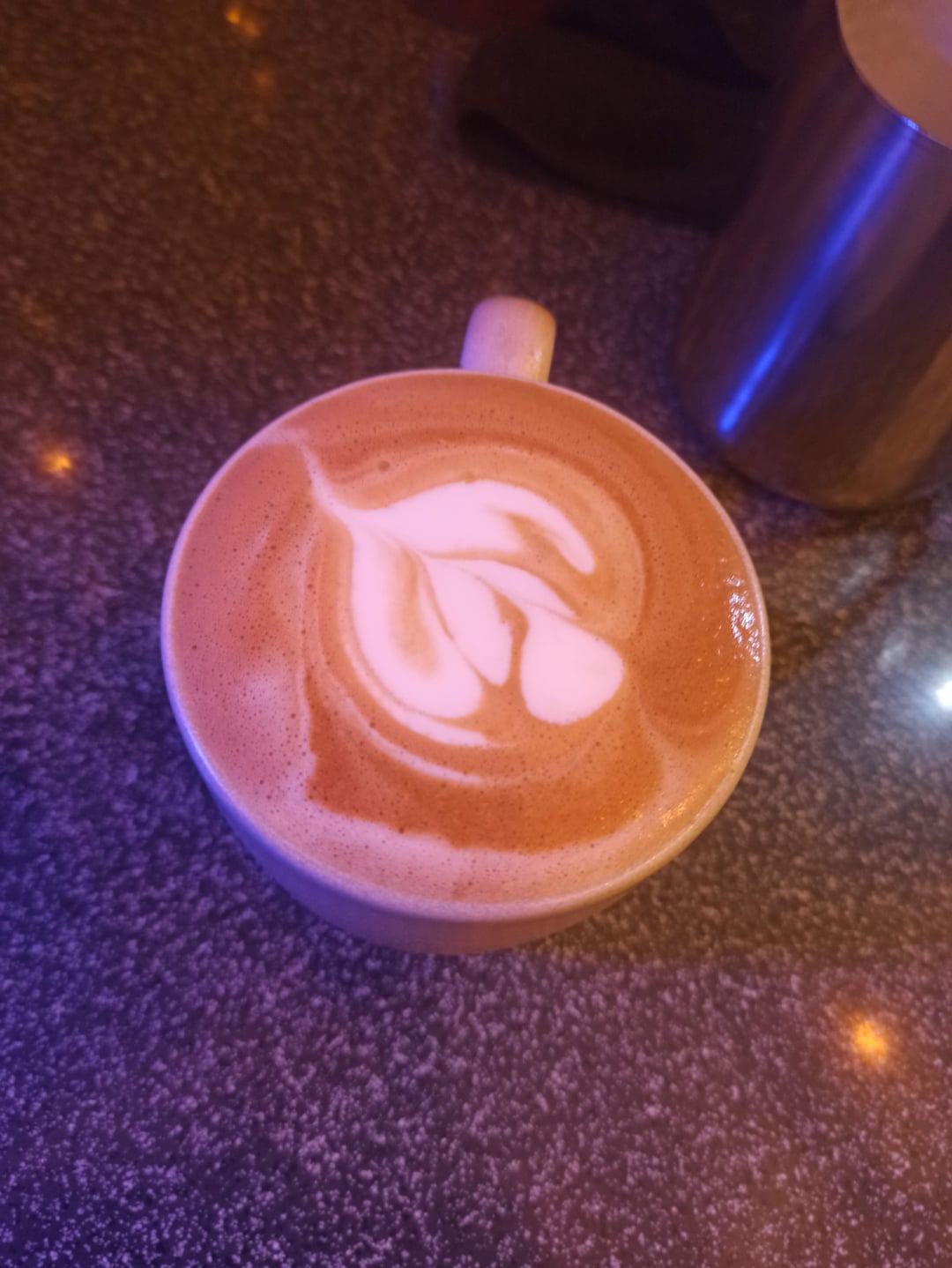 I've just started as a Barista in a small local coffee shop this week. Unfortunately, no one here knows much about milk steaming or latte art. So, I need some feedback on how to develop my latte art. I've had some training previous week in an another coffee shop and these latte arts are the best works I've had until now. But I still struggle to get nice, defined lines. I know it's still early and I'm rushing a bit. However, I really appreciate if you can give me any feedback!
