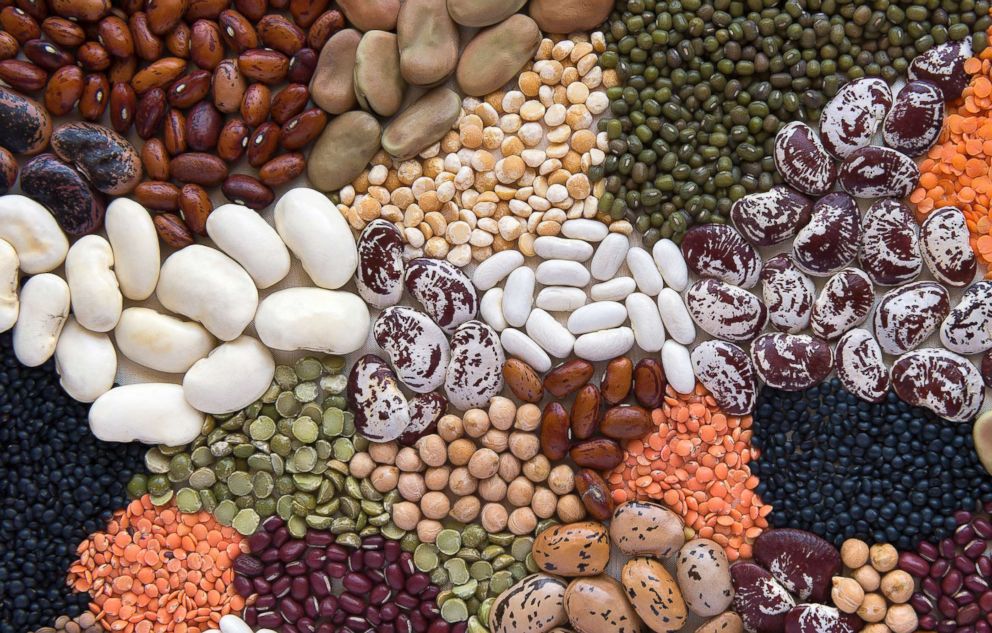 A selection of beans and lentils.