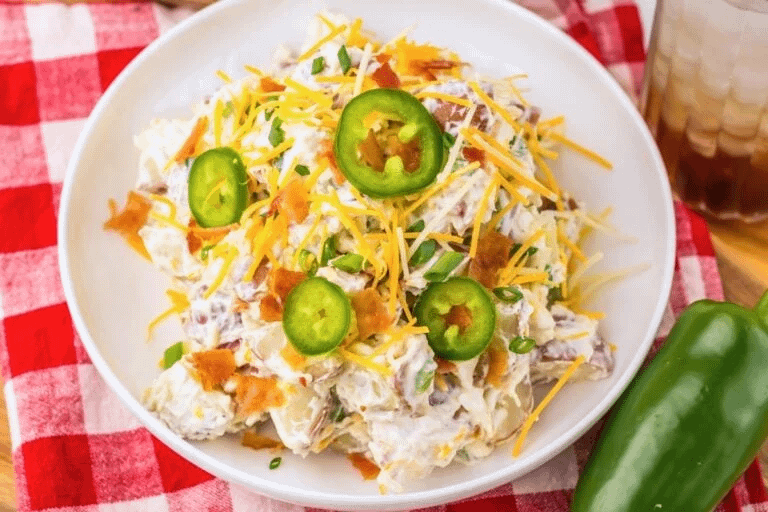 Delicious[ **Jalapeno Popper Potato Salad**](https://www.kimschob.com/jalapeno-popper-potato-salad/) combines the rich creaminess of homemade potato salad with the smoky heat of bacon jalapeno poppers. Ready in just **35 minutes**, it’s surprisingly easy to make.