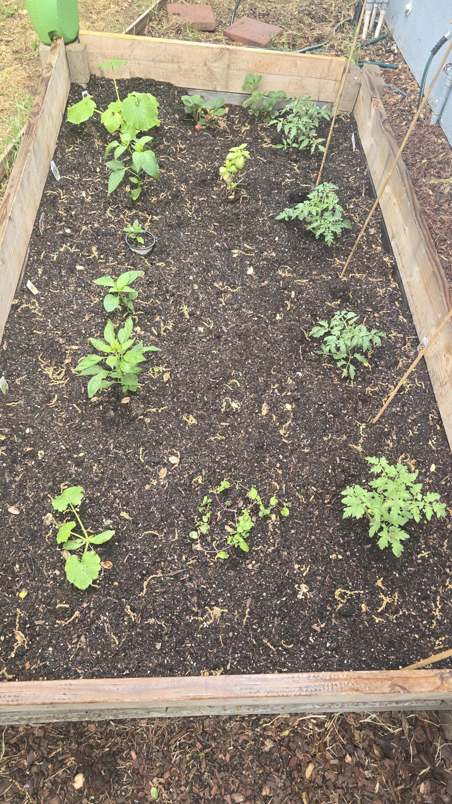 Trying again at tomatoes this year. In the back row I am growing Cherokee Purple, Black Krim, Black Cherry and Kellogs Breakfast. Going to go with the Florida weave this year, no.cages, we'll see.