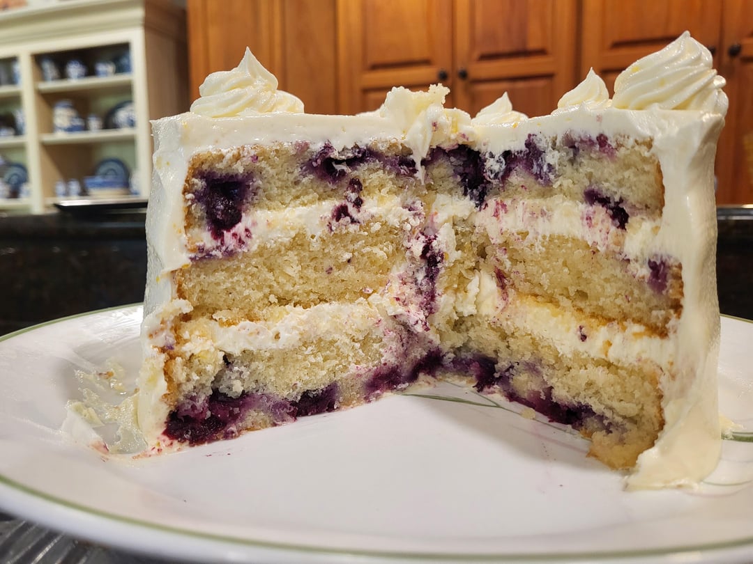 Made a rough 6" trial run on a cake for Easter, planning to do 4 layer 9". Gonna up the blueberry just a bit. I'm thinking of doing lemon curd between the layers instead of the buttercream. Also thinking of cutting off the tops to expose the crumb allowing the curd to absorb a little into the cake. Happy with this one but think the curd would add a little pop. Thoughts?