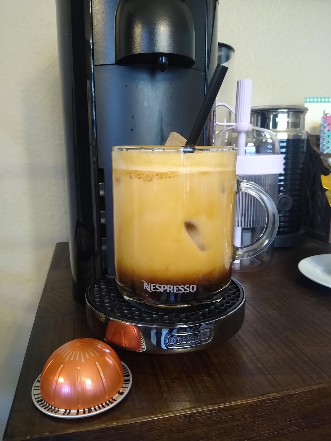 Brewed over brown sugar then added ice, almond milk and a caramel drizzle. GINSENG Delight! I always have to correct this from ginger, but this time I missed it while posting and can't edit my tittle, ugh!
