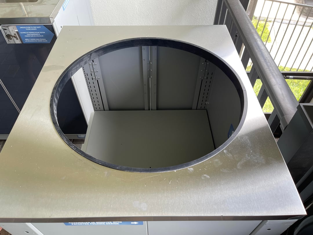 My wife bought some modular outdoor kitchen cabinets from BlueSky. The intention was to put my CJ II in the kamado cabinet but it turns out it won’t work due to the depth of the hinge. Plan B is to get a Joe Jr. and use that but we can’t figure out if the Joe Jr. will fit. The circular cutout is slightly under 22” and from the front edge of the cutout to the rear edge of the overall cabinet (which will be placed against a wall) is 23”. There is an adjustable shelf (holds 300 lbs) so I’m not worried about getting the hinge above the level of the counter.