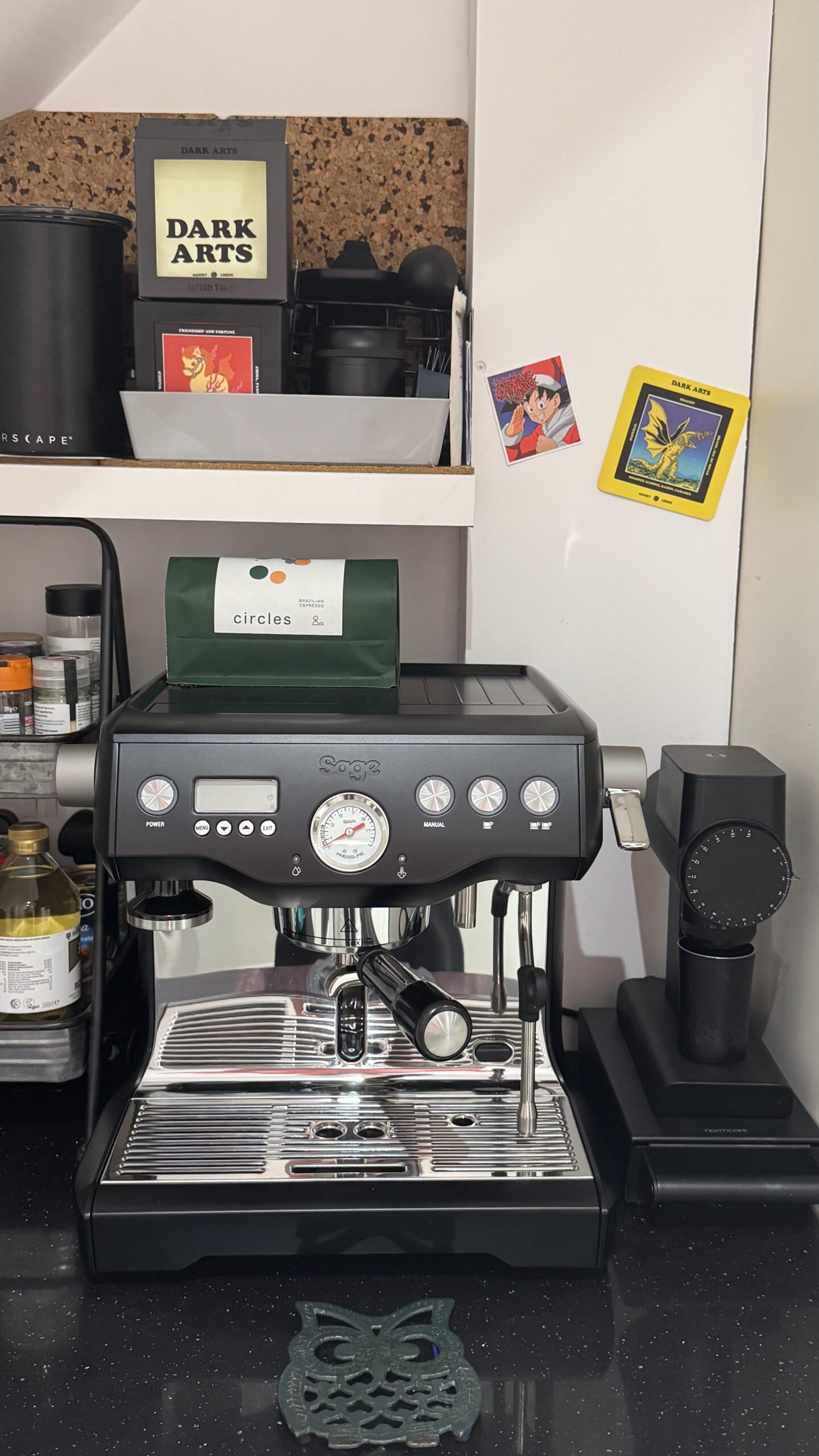 Started with a Bambino Plus two years ago and moved house exactly year ago. Now a very happy owner of a Dual Boiler – I saw one in black truffle on sale online and decided to just go for it!
