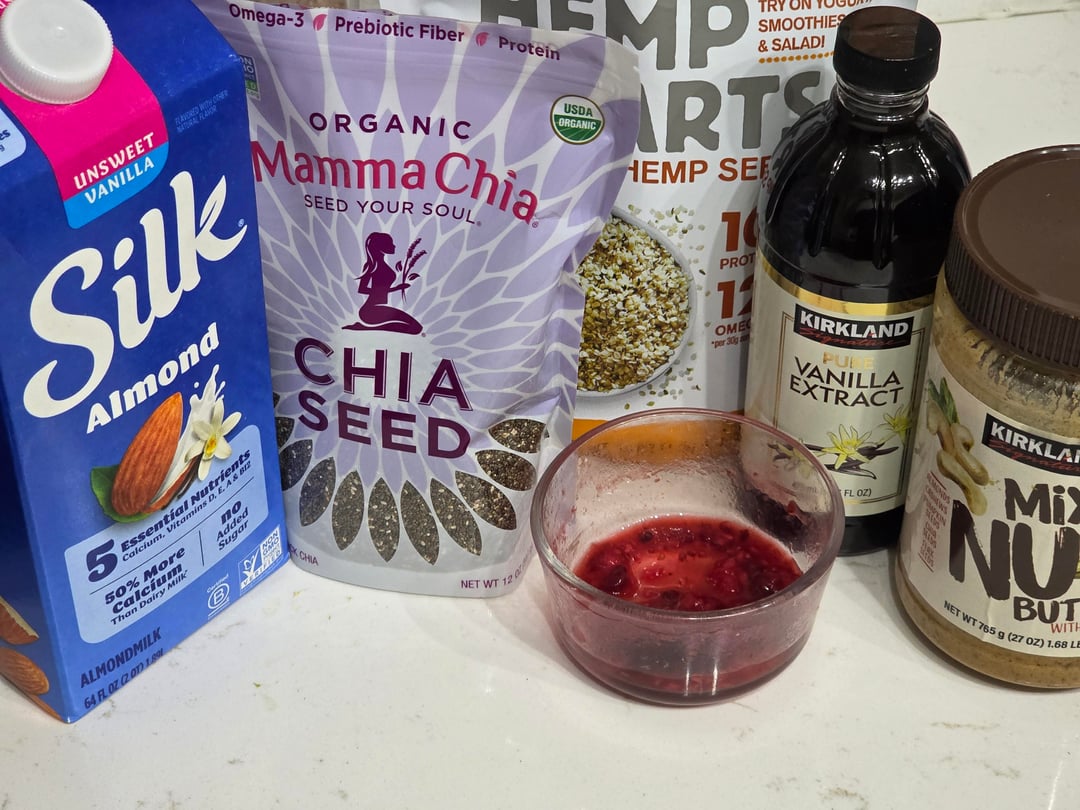 Turned out delicious! Unsweetened vanilla almond milk. A teaspoon of vanilla extract and some monkfruit powder to sweeten. Mashed some black berries and raspberries with some monkfruit powder to make a jam. The mixed nut butter from Costco is a bit runny but so good, so it works perfectly for recipes. Nearly no carbs and zero sugar.