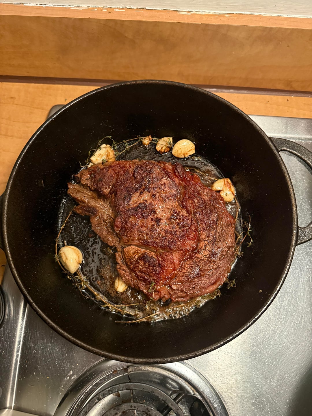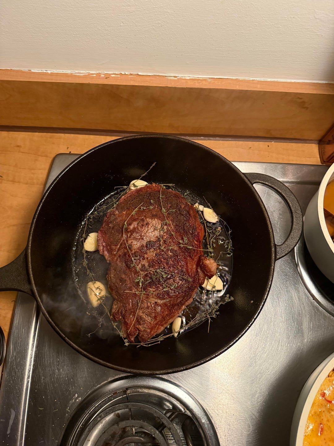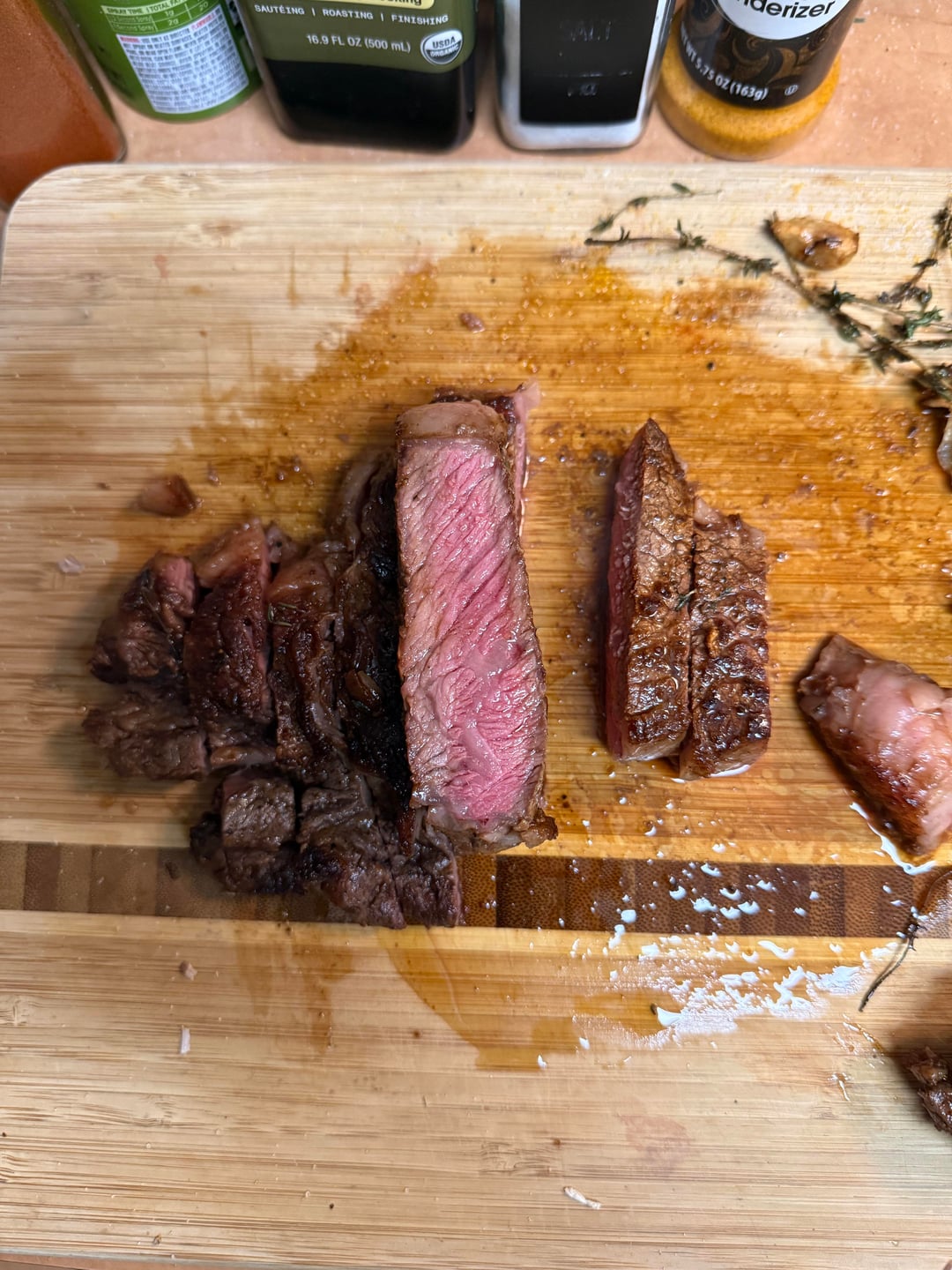 ogzkittlez 1 day ago That is a beautiful sear. Nice herb choice too and bonus points for the cast iron and perfect temp
