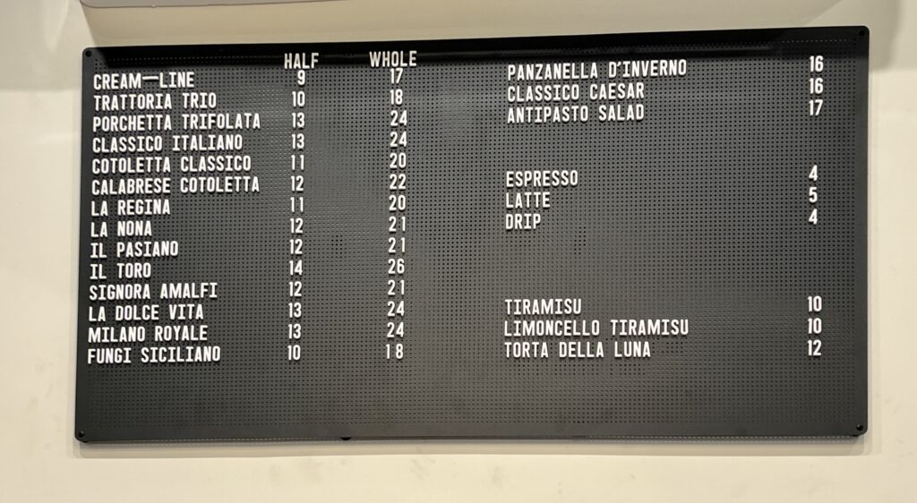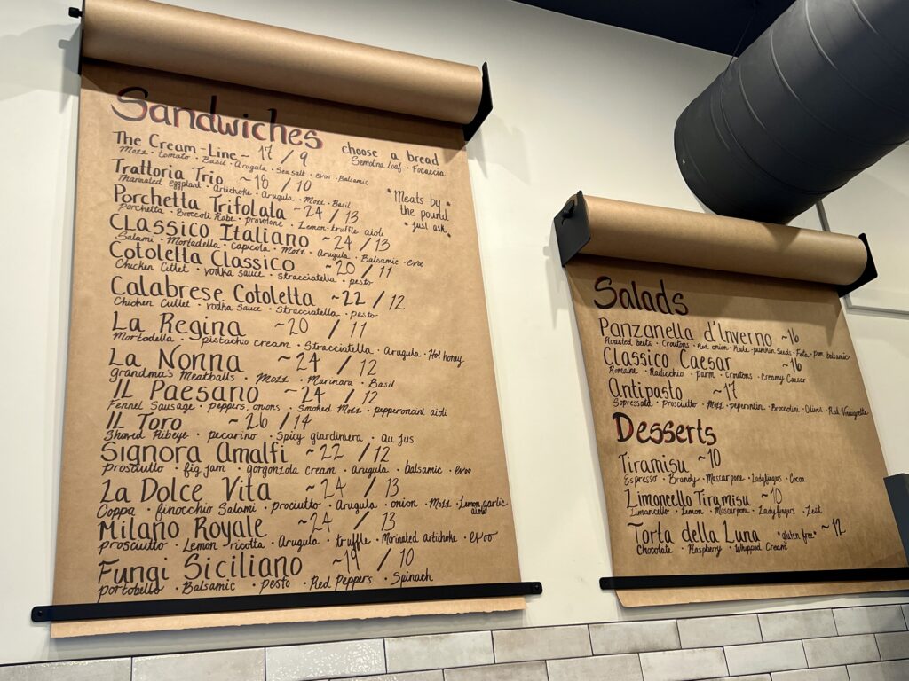 The menu is primarily sandwiches, available on semolina bread sourced from A&M Bakery (14-inch whole as well as half sizes available), or served on Cusano’s homemade 8-inch-by-8-inch focaccia. There is also gluten-free bread available as an option, he said.