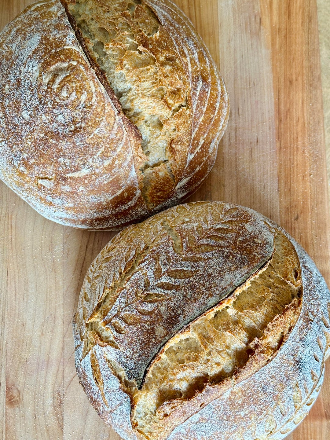 A few weeks into making my own sourdough and especially loving this recipe with whole wheat and rye! These are my 5th and 6th loaves I’ve made 🙂