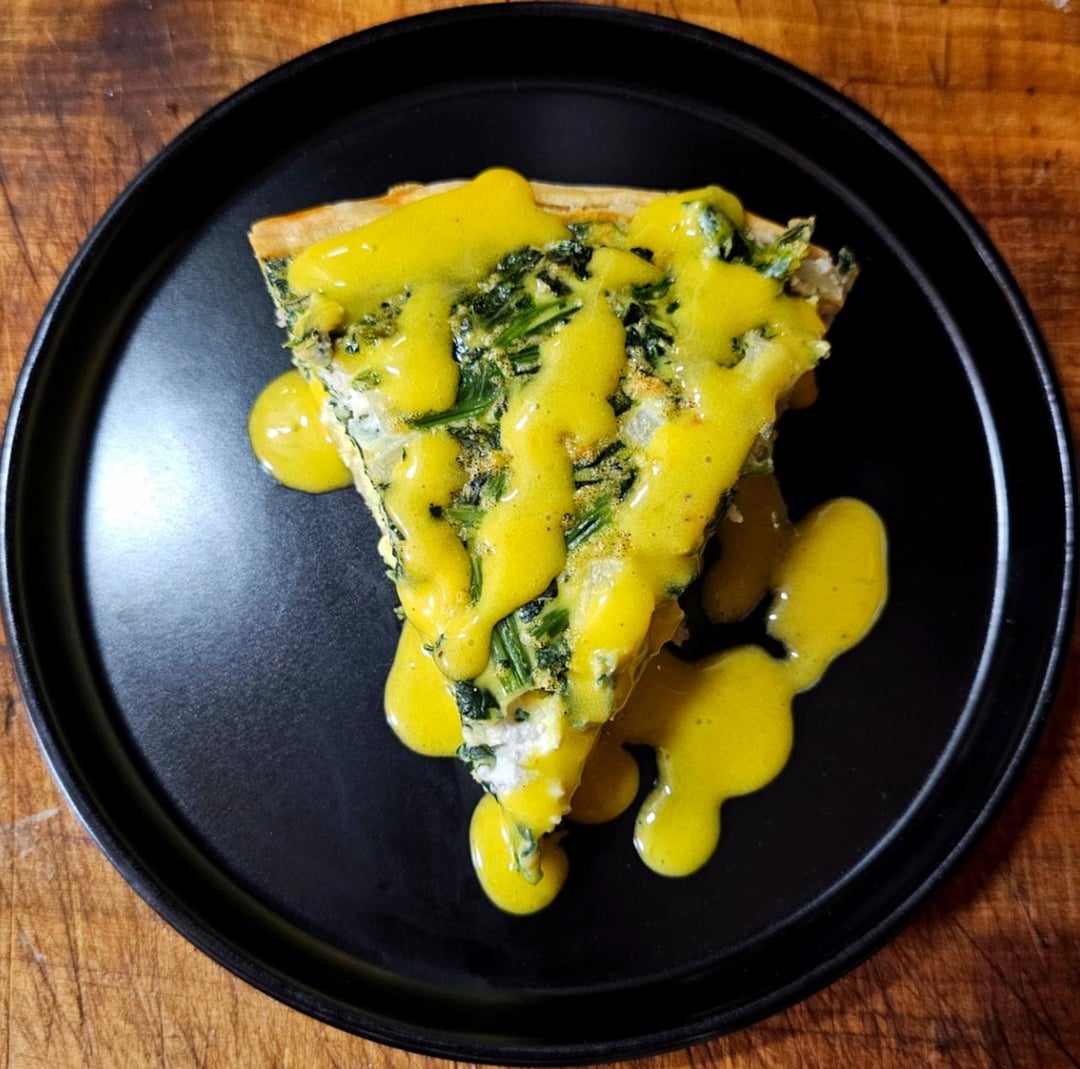 Share Facebook Twitter Pinterest LinkedIn Reddit Ended up with a bunch of extra eggs so I made a spinach & feta quiche w/ hollandaise 😁 by XRPcook 1 Comment Ok-Taste6857 3 weeks ago why does that sauce look illegal?? Is this eggs + spinach or am I seeing things?