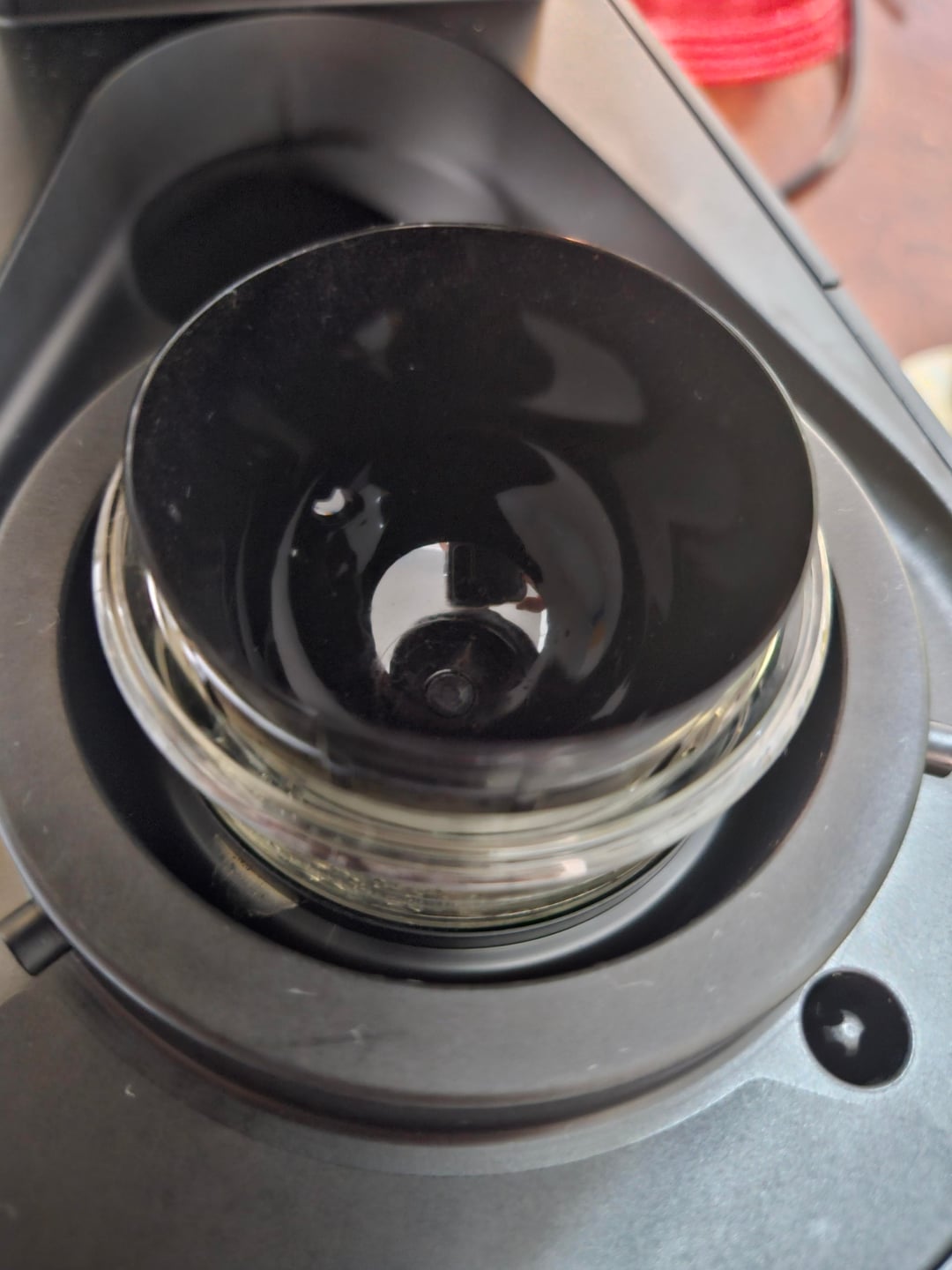 In an attempt to get the water out of the cup, I turned the coffee maker upside down and all the water poured down to that area.