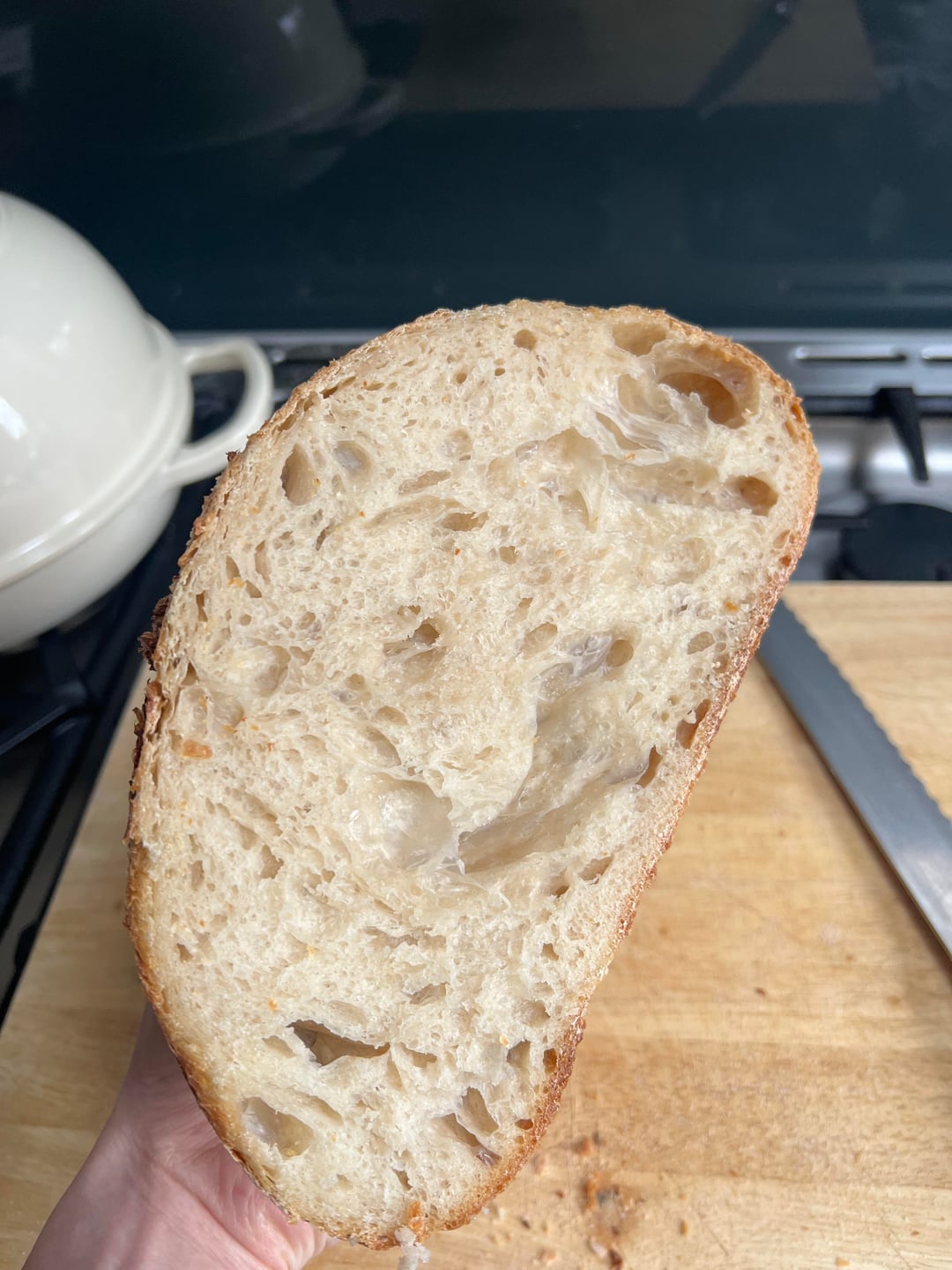This was a bigger loaf so it took longer to ferment and bake than my usual size but I feel like it looks underfermented? I should have set my proofing box at a higher temperature but I was worried about it going over whilst I was at work.