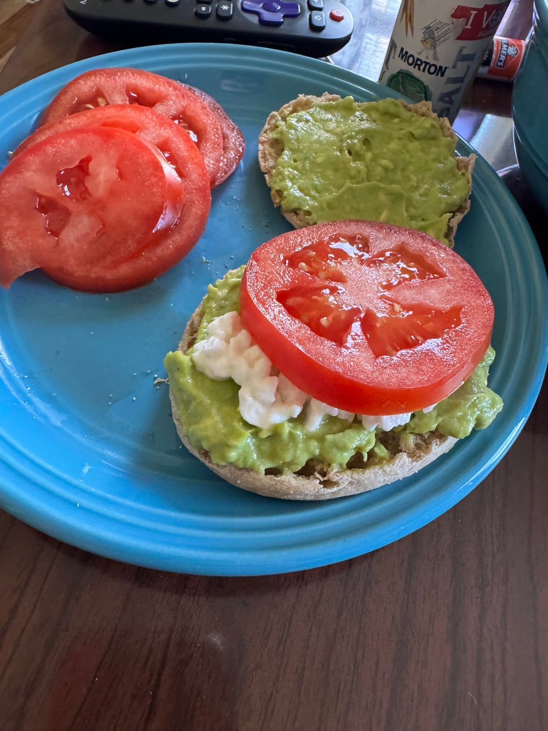 English muffin with avocado spread, cottage cheese, tomato, and the sauce on too. That sauce really is top tier. I highly recommend if you’re into hot sauce. Not very hot though. by rangusmcdangus69 2 Comments Common-Library519783 2 weeks ago Nice! It looks great 💯 sober4lifee 2 weeks ago I love avocado toast! Enjoy!