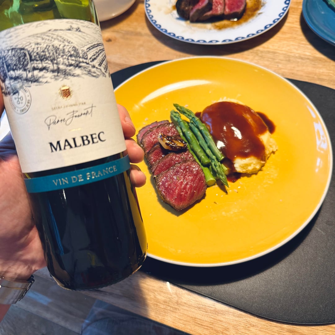 Dry brined the night before, straight to pan (no reverse sear), avocado oil, 90s each side flipping every 30s, rested with butter, going for rare. Served with blanched asparagus, cheesy mash and an excellent £4.99 Malbec (thanks Tom Gilbey). Highly recommended.