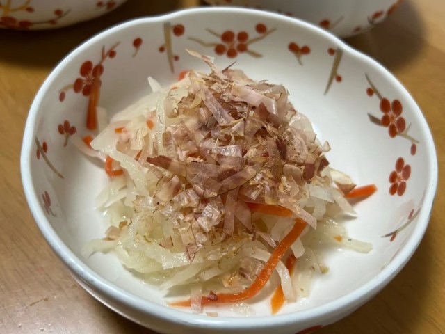 … and Kyoto Namasu: a vinegar-based salad often served at celebrations, topped with bonito flakes.