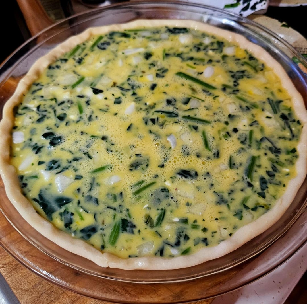 Ended up with a bunch of extra eggs so I made a spinach & feta quiche w/ hollandaise 😁