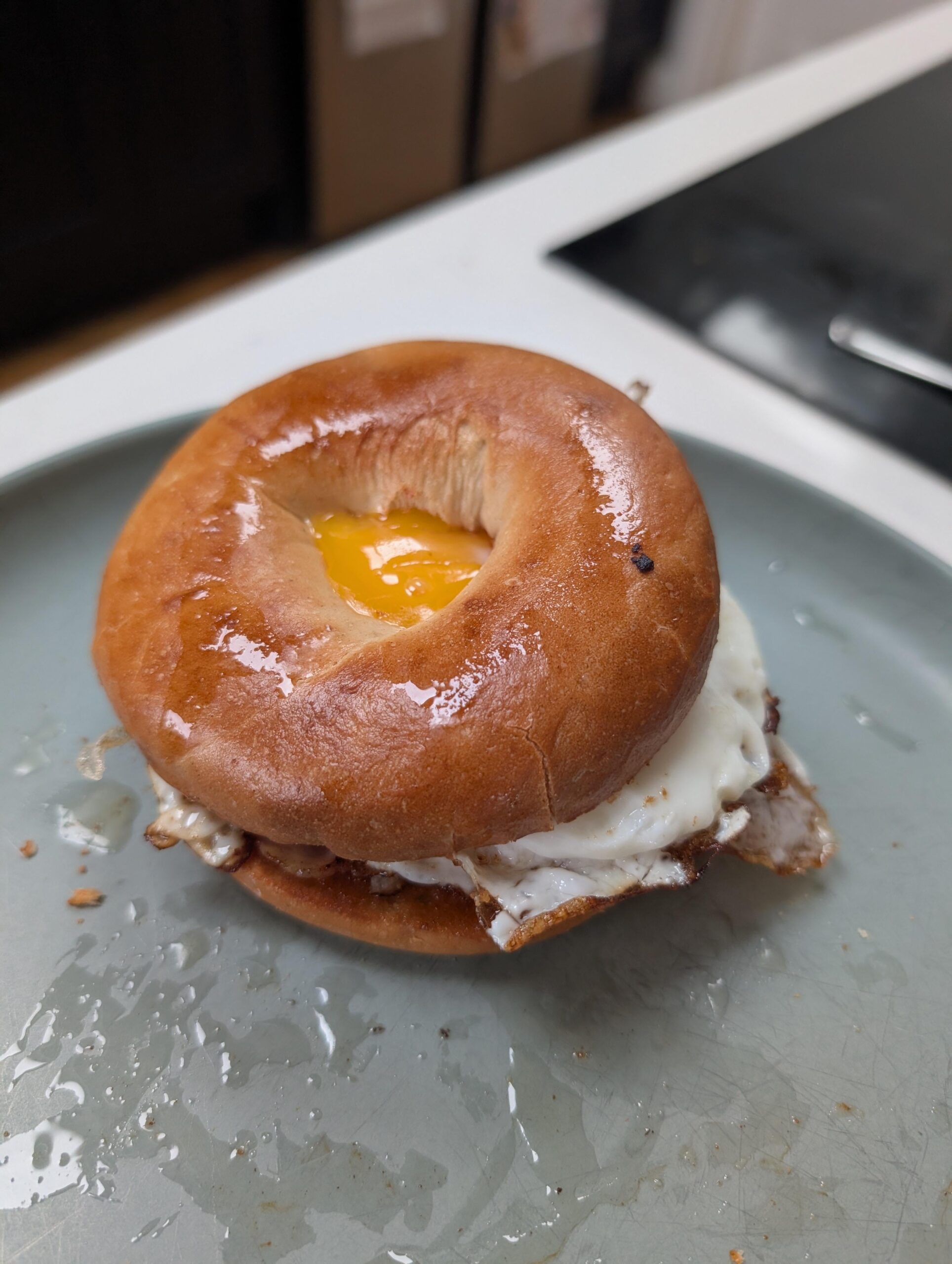 2 rashers Finnebrogue smoked back bacon, 2 large Ocado eggs in a Fitzgerald's sourdough bagel. Delish 🤌 by Then_Profession_7628 2 Comments Enough_Taro8889 2 weeks ago Delicious LuxeKissxo 2 weeks ago nice wanna try that looks delicious