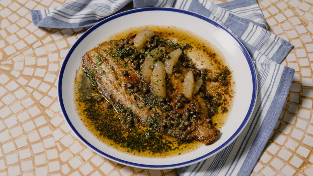 Ingredients100 g plain flourFine sea salt1 x 400 g whole brill, gutted, cleaned3 lemons2 tbsp vegetable oil80 g butter25 g salted capers¼ small bunch parsley, leaves picked, finely choppedPink sea salt flakes, for seasoningInstructionsPlace the plain flour and a generous pinch of salt on a large, shallow plate. Mix to combine the flour and salt, then add the fish and lightly coat on all sides with the flour. Juice 1 lemon and cut the remaining lemons into segments and set aside.Heat the vegetable oil in a large frying pan (large enough to fit the fish). Add the fish, top side down and cook until a crust appears, then flip and continue to cook until the fish is almost cooked through.Add the butter to the pan. Once it melts and begins to foam, add the capers, lemon juice and parsley. Baste the fish until cooked through. Add the lemon segments to the pan and allow to warm through.Remove from the heat. Gently turn the fish out onto a large serving plate and pour over the sauce from the pan. Sprinkle with pink sea salt flakes and serve immediately.