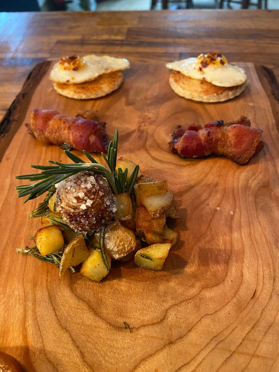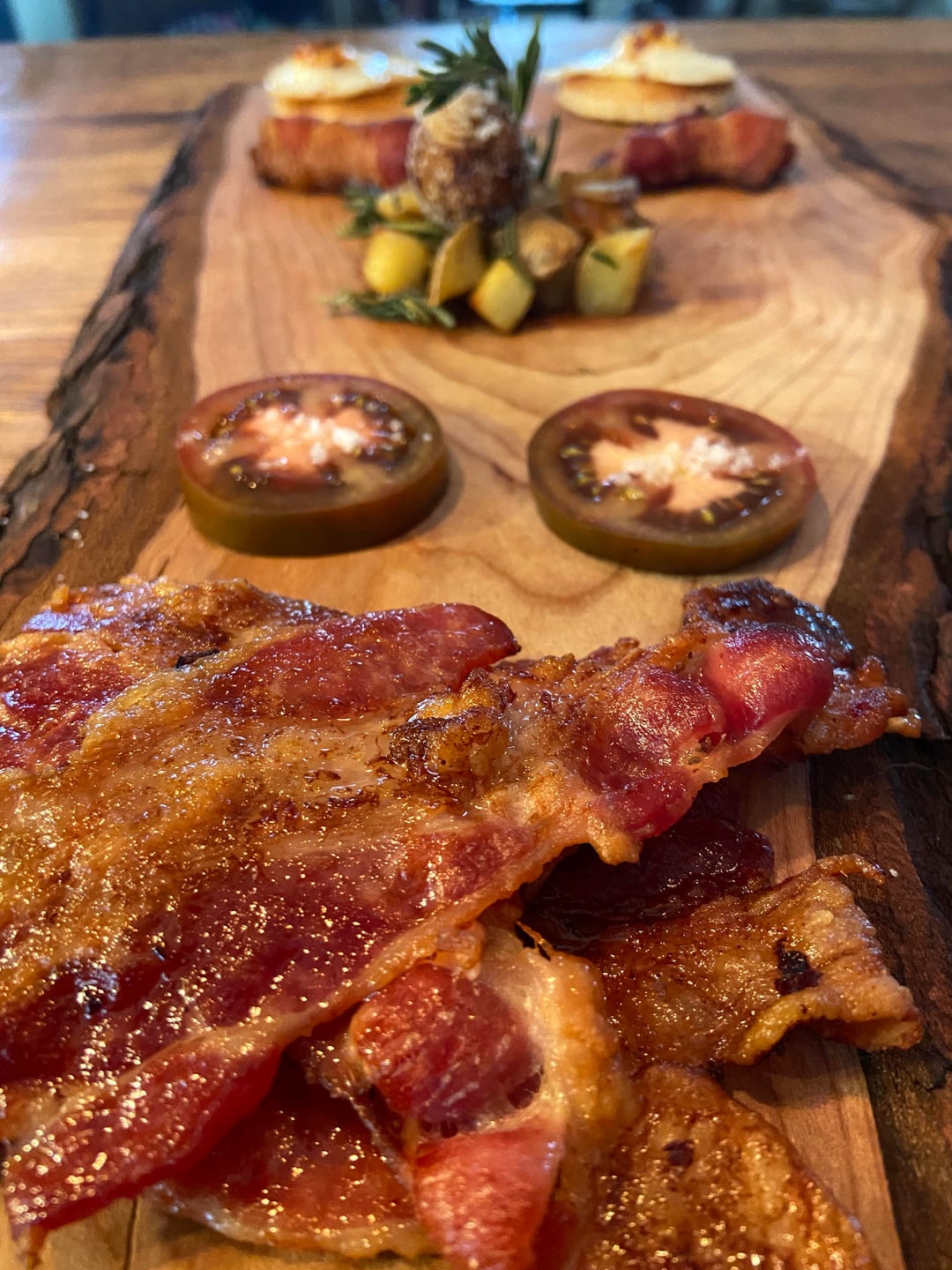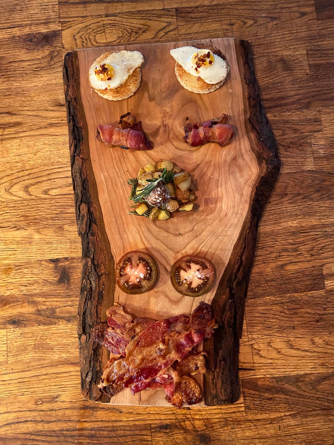 Rosemary home fries. Salted onion confit. Heirloom tomatoes