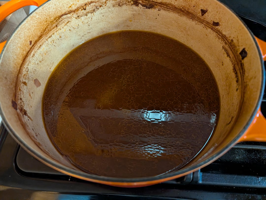 After you sear the meat you should put some serious color on your mirepoix then add your liquid, also remove a few cups of braise liquid skin the fat and reduce for a finishing sauce