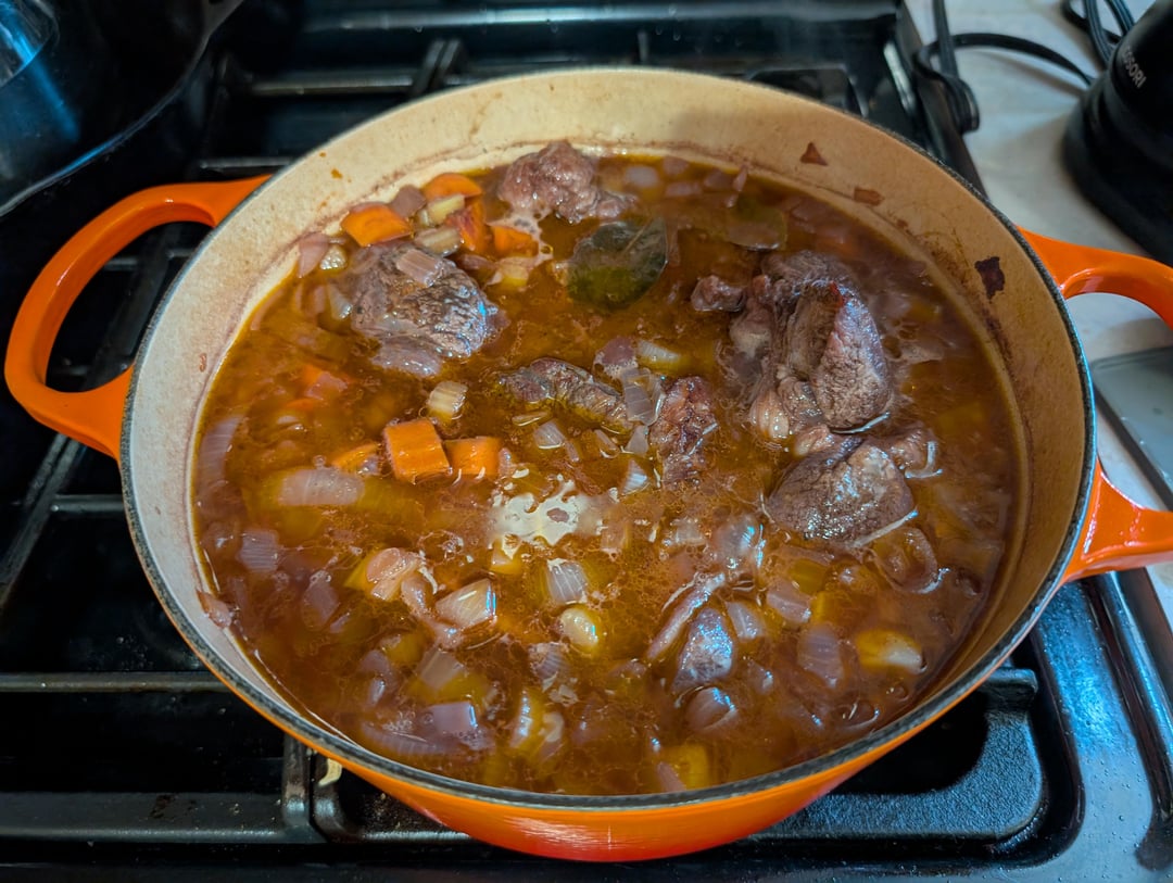 Beef shanks braised in red wine, enjoyed by the whole family