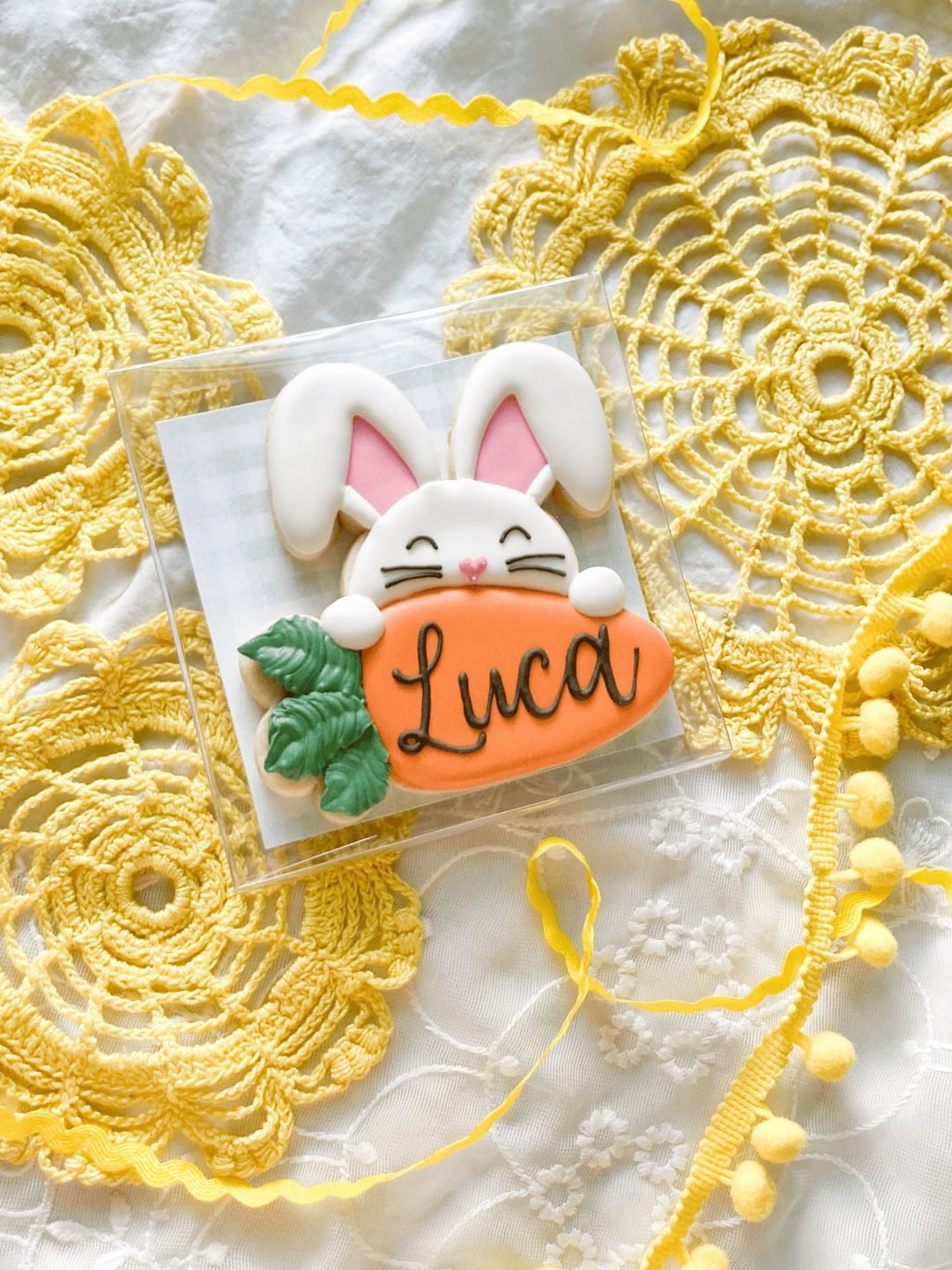 Easter cookies! The first pic was for a pop-up and the rest were preorders. The personalized Easter bunny sold the most *by far* if you’re looking for inspo for future presales.