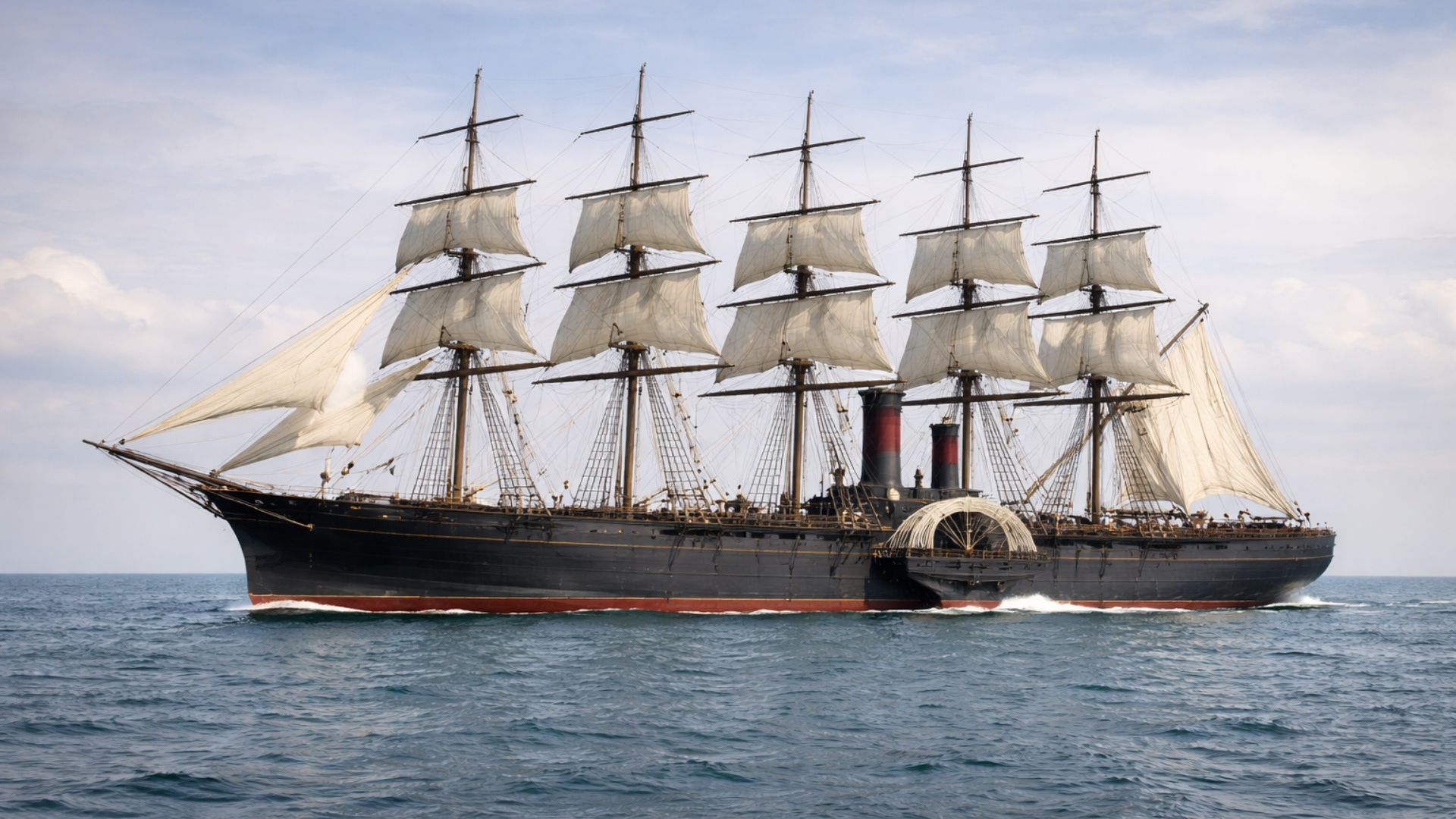 With a length of 211 meters, a double iron hull, and propulsion by sails, paddles, and a screw propeller simultaneously, the Great Eastern was the largest ship on the planet and ultimately laid the first successful transatlantic telegraph cable.